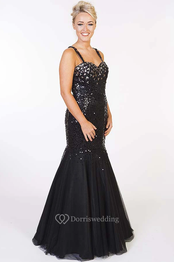 Mermaid Crystal Sleeveless Floor-Length Sequins Prom Dress With Straps