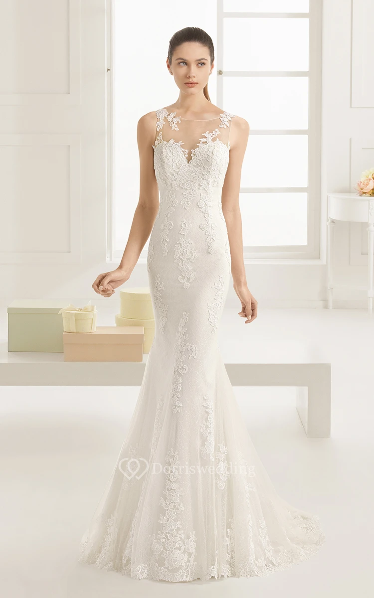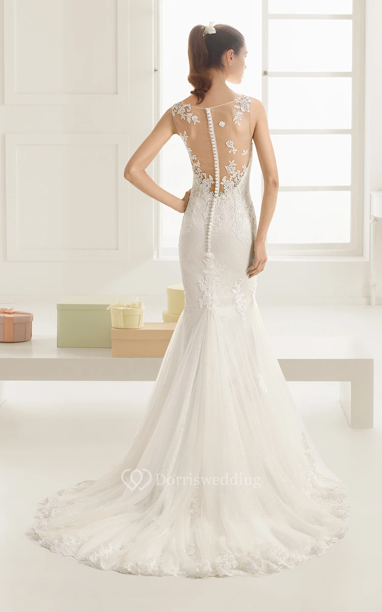 Mermaid Exquisite Scoop-Neck Dress With Illusion Back