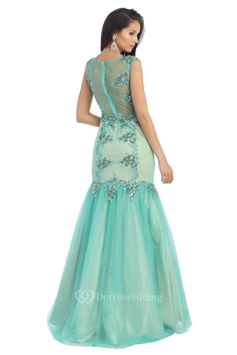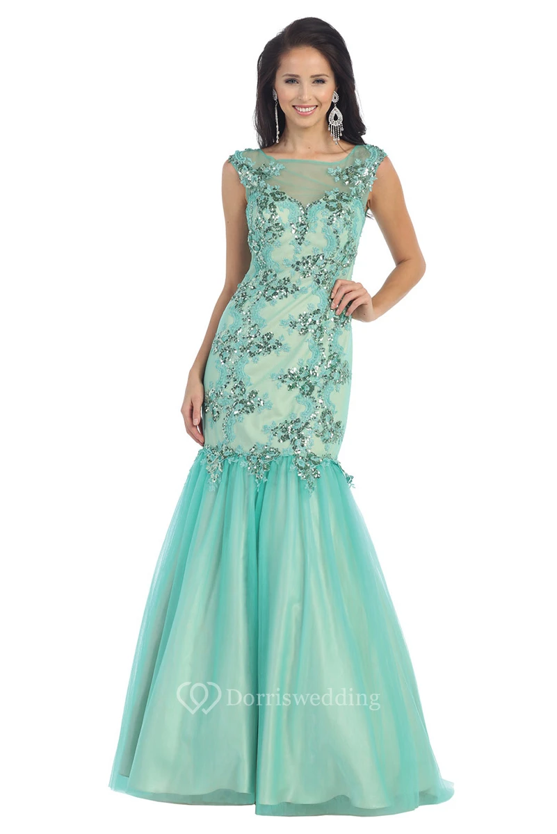 Mermaid Floor-Length Bateau Illusion Dress With Appliques And Sequins