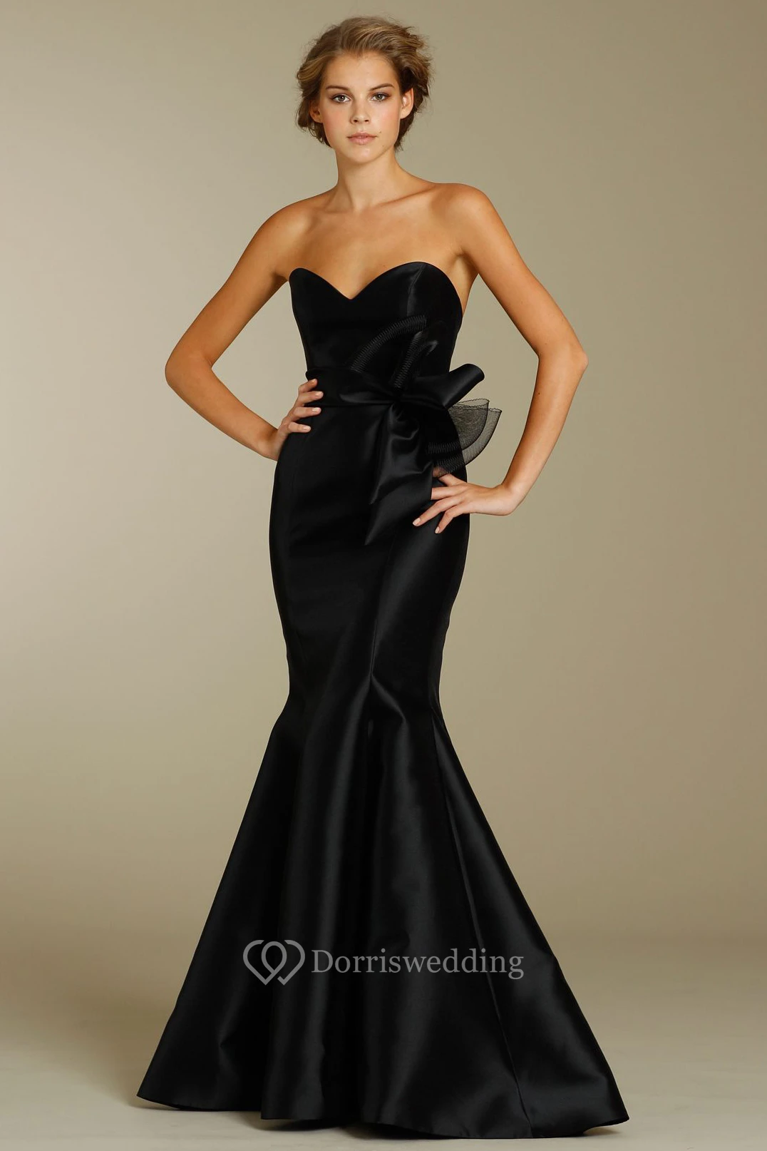 Mermaid Floor-Length Bowed Sleeveless Sweetheart Satin Bridesmaid Dress