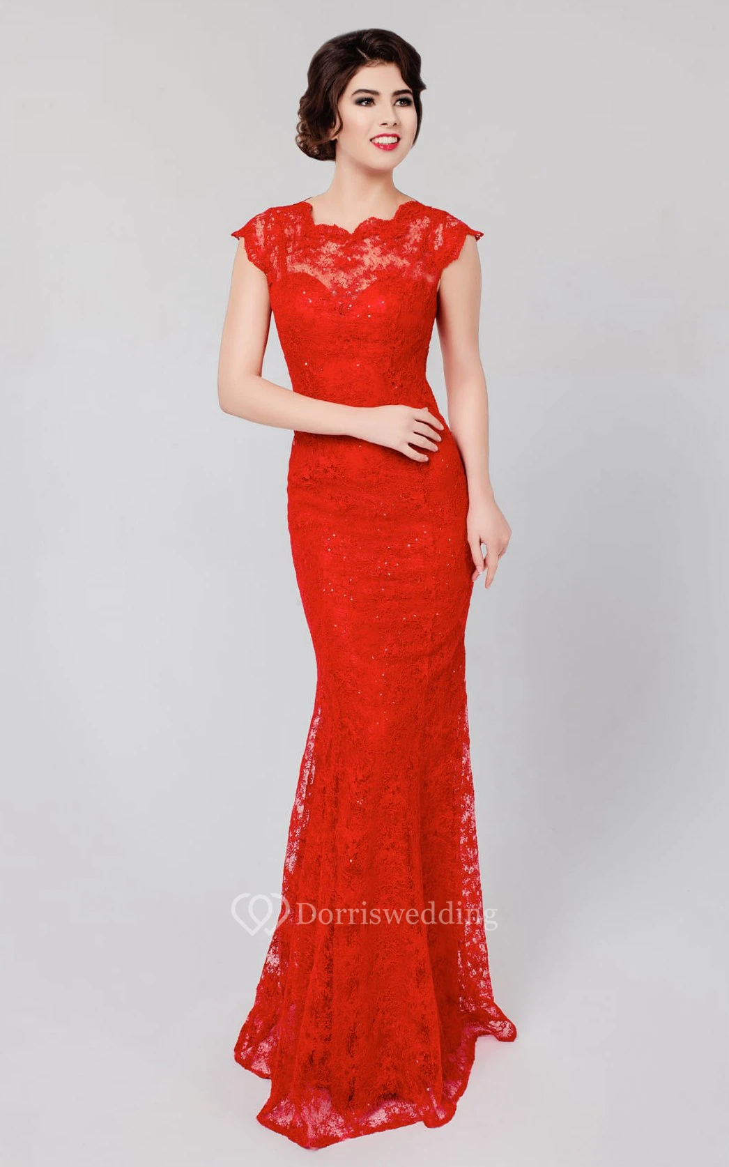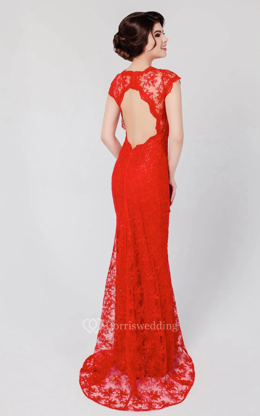 Mermaid Floor-length High Neck Short Sleeve Lace Keyhole Dress