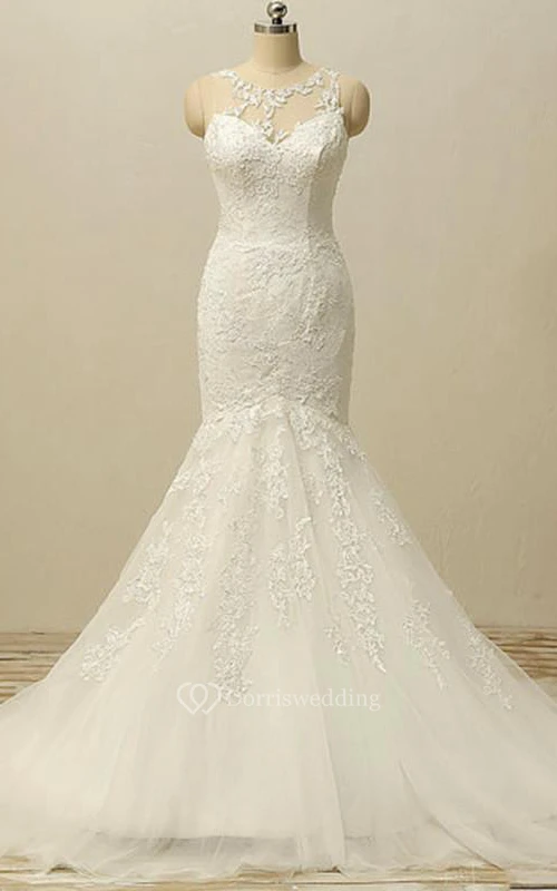 Mermaid Floor-Length Pleats Jacket Backless Keyhole Tulle Lace Dress