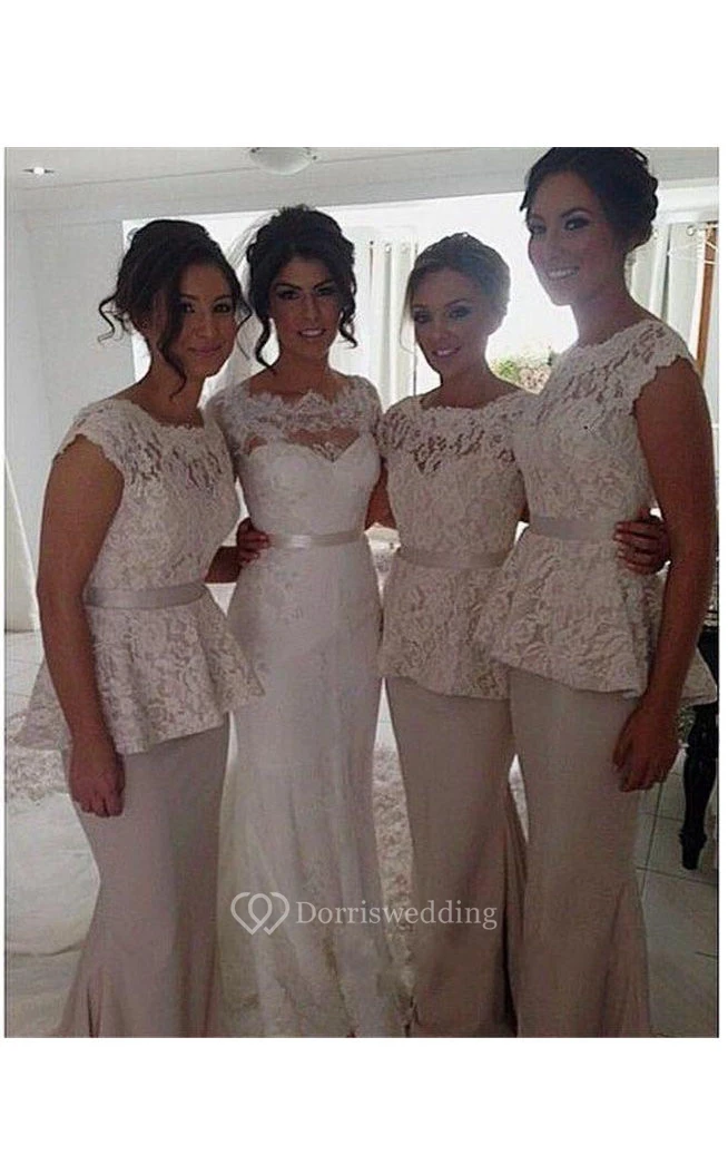Mermaid Floor-length Scoop Sleeveless Cap Lace Dress