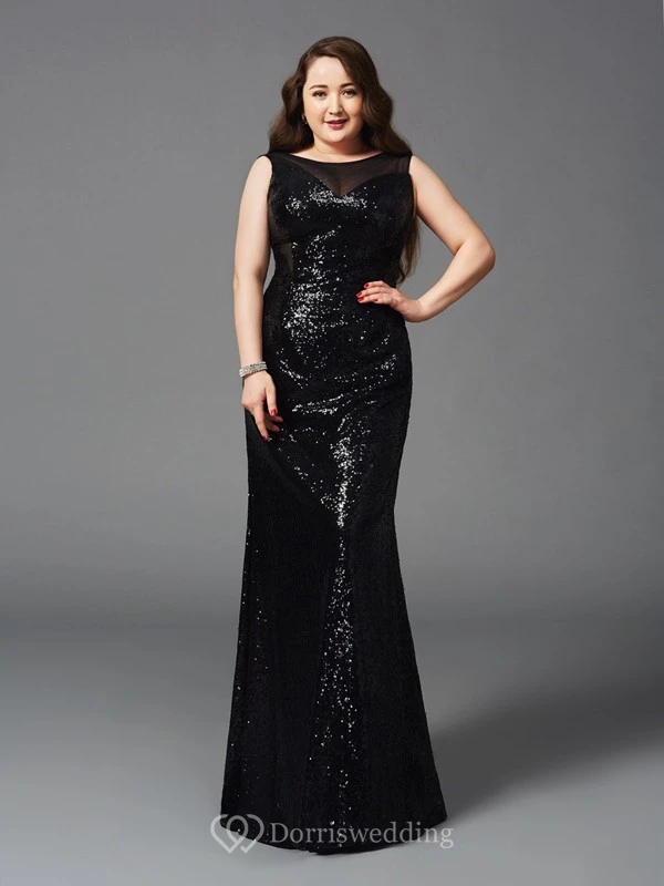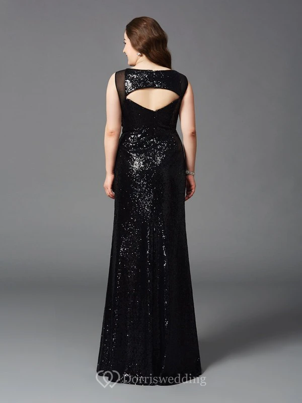 Mermaid Floor-length Scoop Sleeveless Sequins Pleats Keyhole Dress
