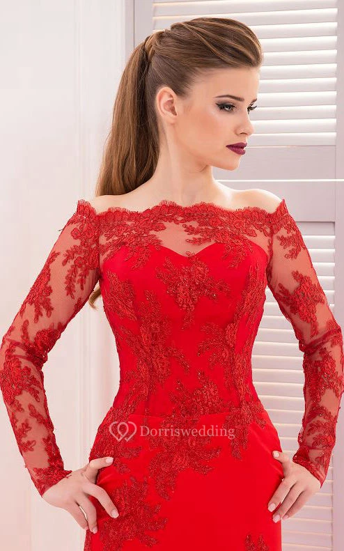 Mermaid Floor-Length Sweep Off-The-Shoulder Long Sleeve Lace Appliques Split Front Zipper Dress