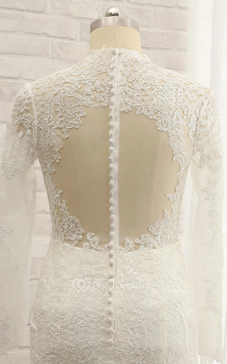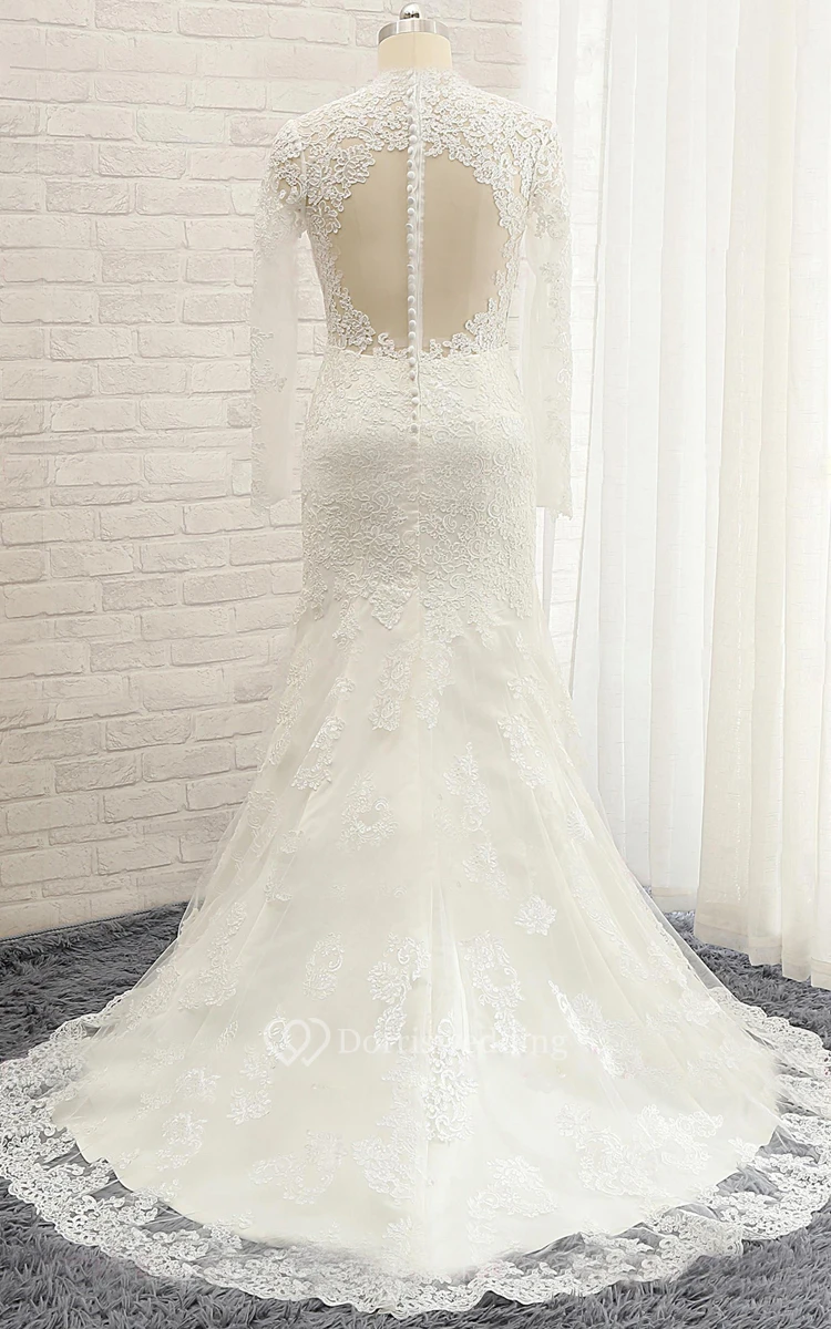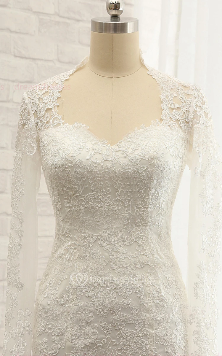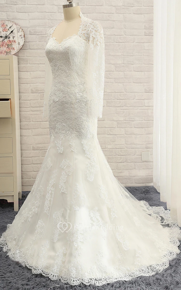 Mermaid Floor-Length Sweetheart Long Sleeve Appliques Sweep Train Backless Button Zipper Corset Back Keyhole Lace Dress