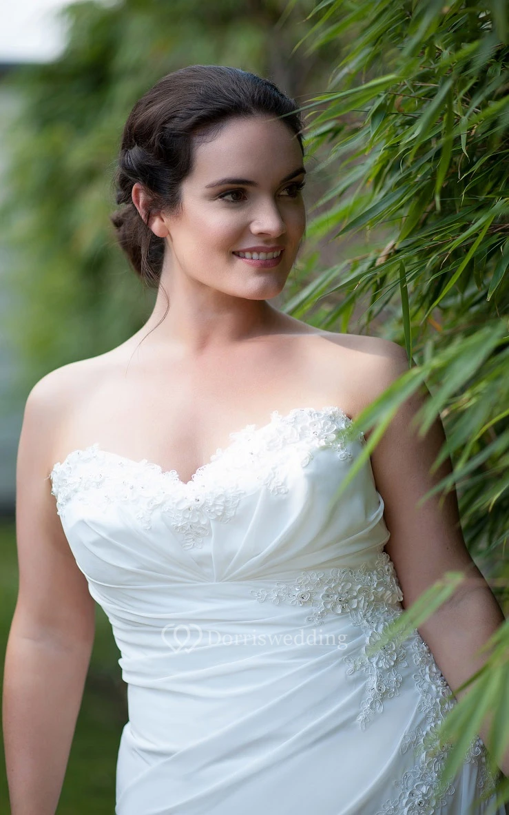 • Hemline/Train: Floor-length, Sweep/Brush Train