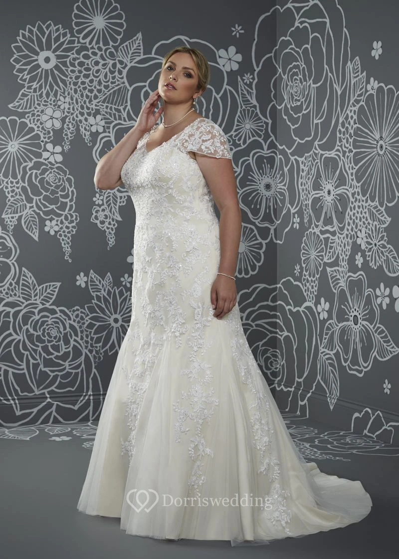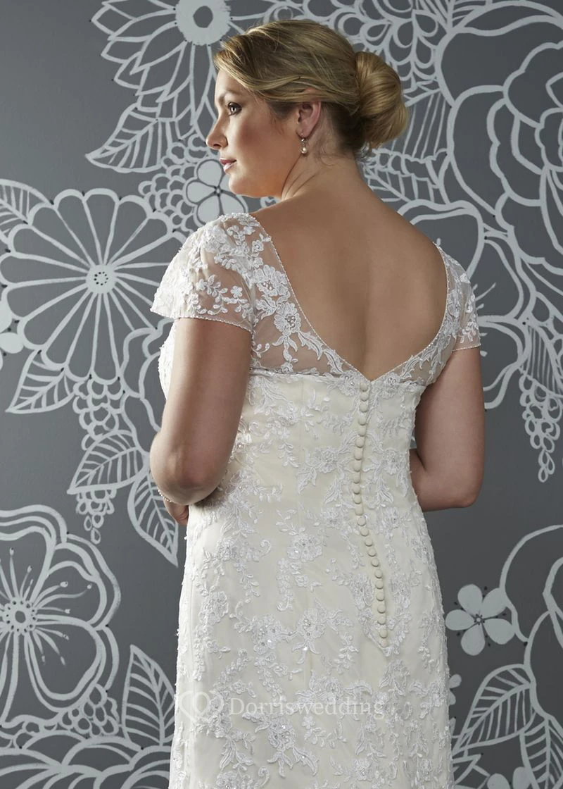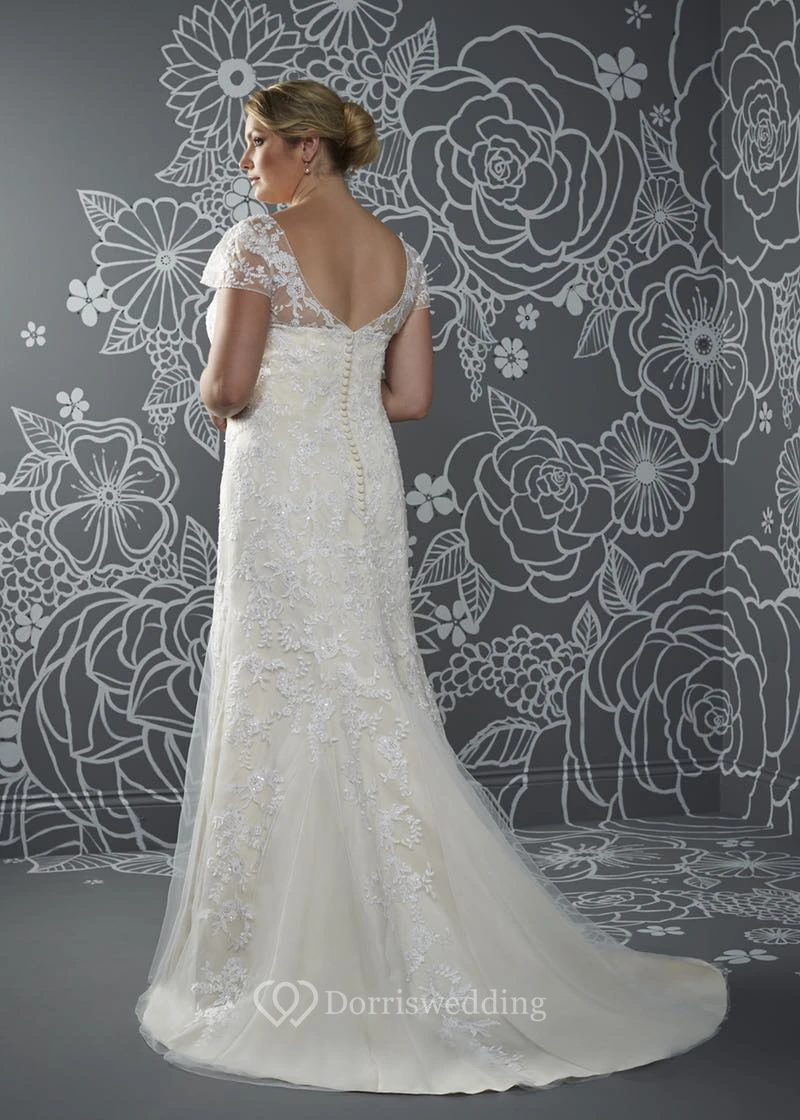 Mermaid Floor-Length V-Neck Cap Lace Sweep Train Low-V Back Appliques Dress