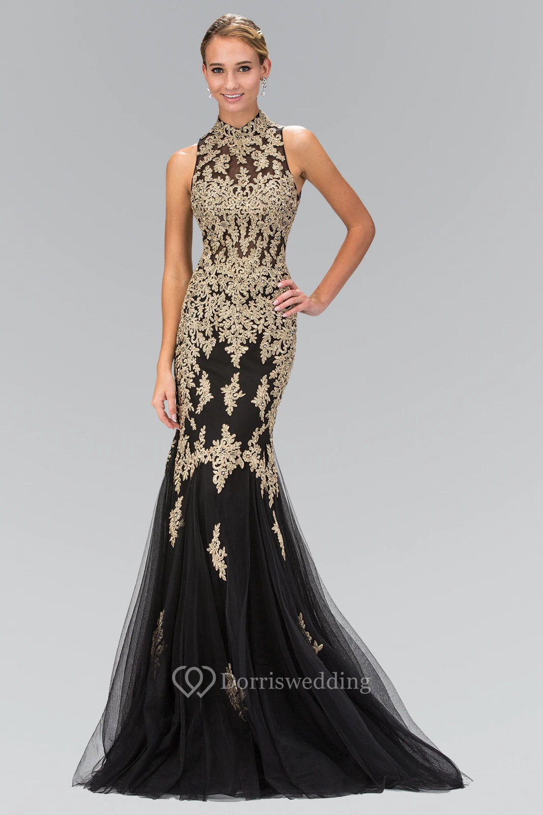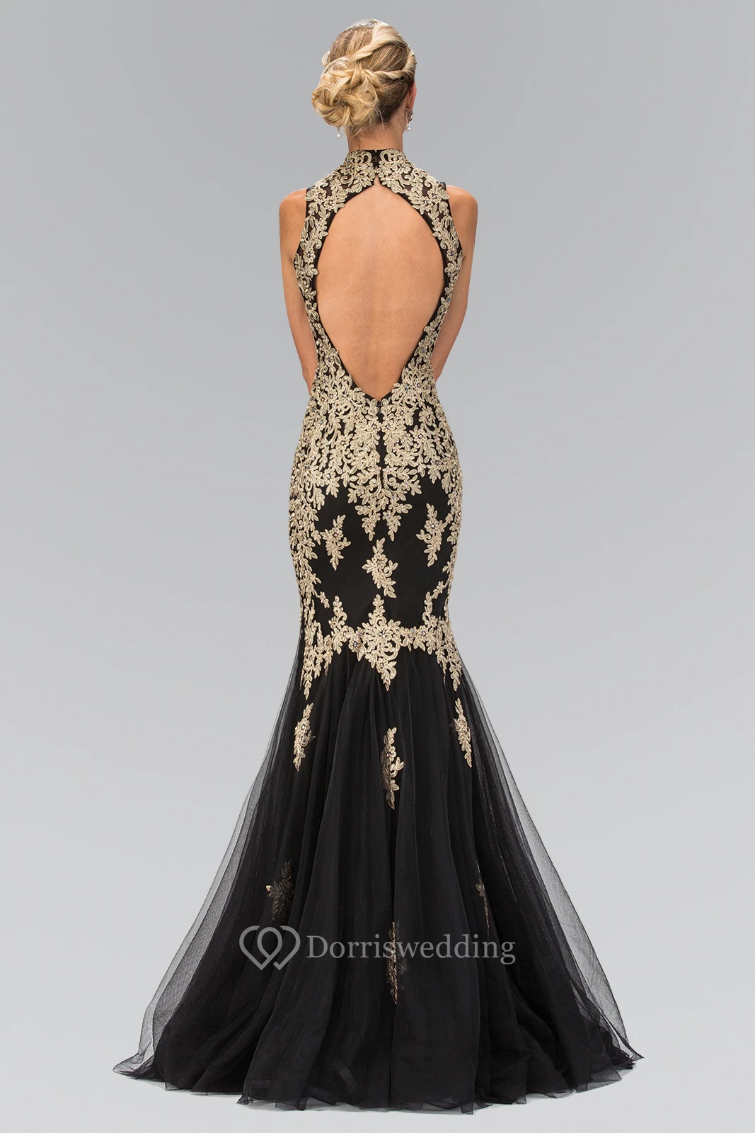 Mermaid High Neck Sleeveless Tulle Keyhole Dress With Appliques