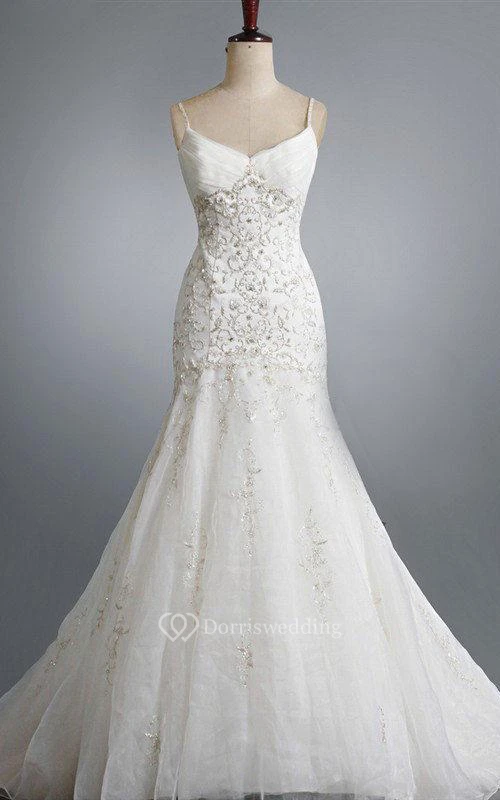 Mermaid Knee-Length Straps V-Neck Straps Organza Dress