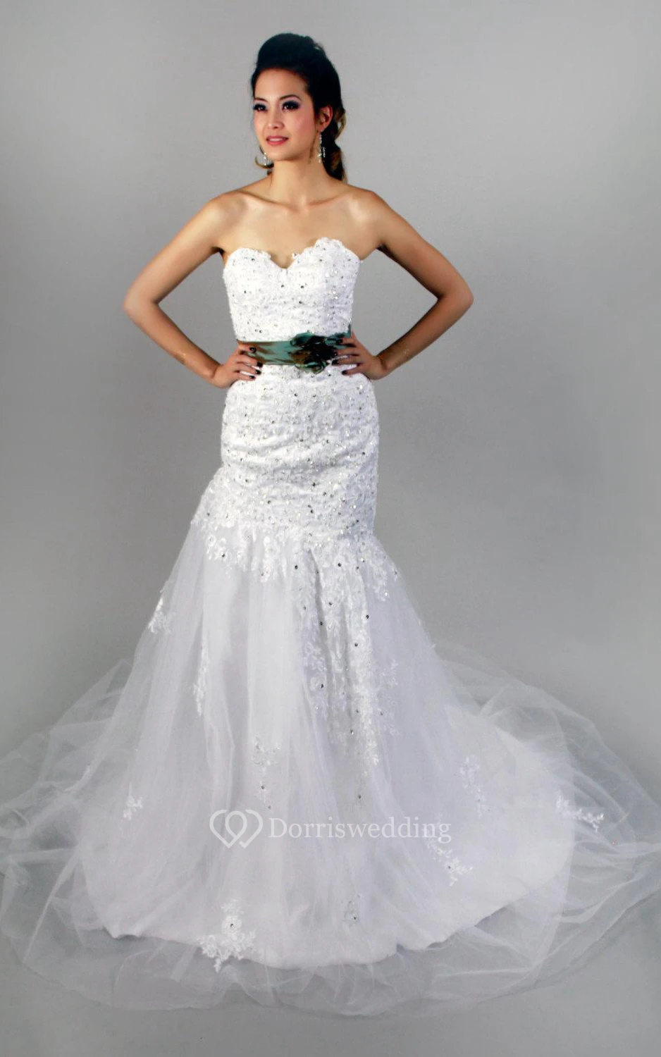 Mermaid Lace and Tulle Sweetheart Dress With Beadings and Floral Sash