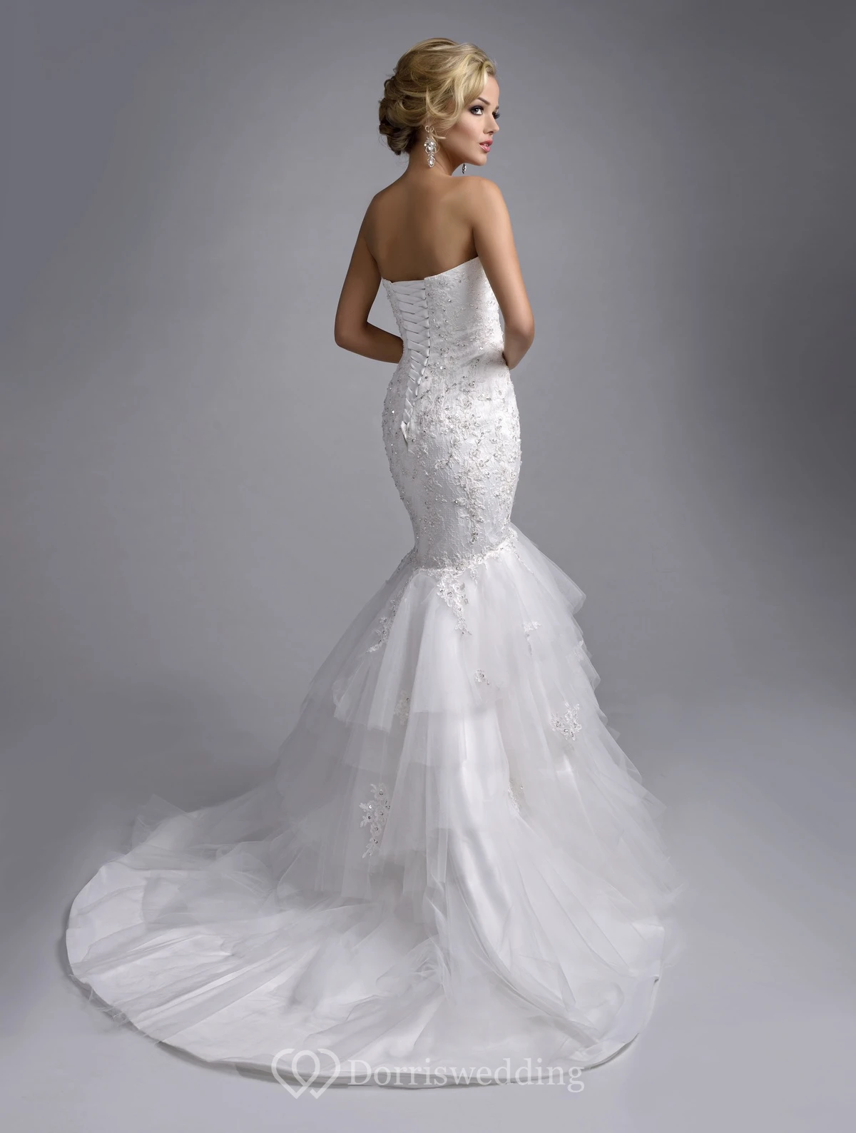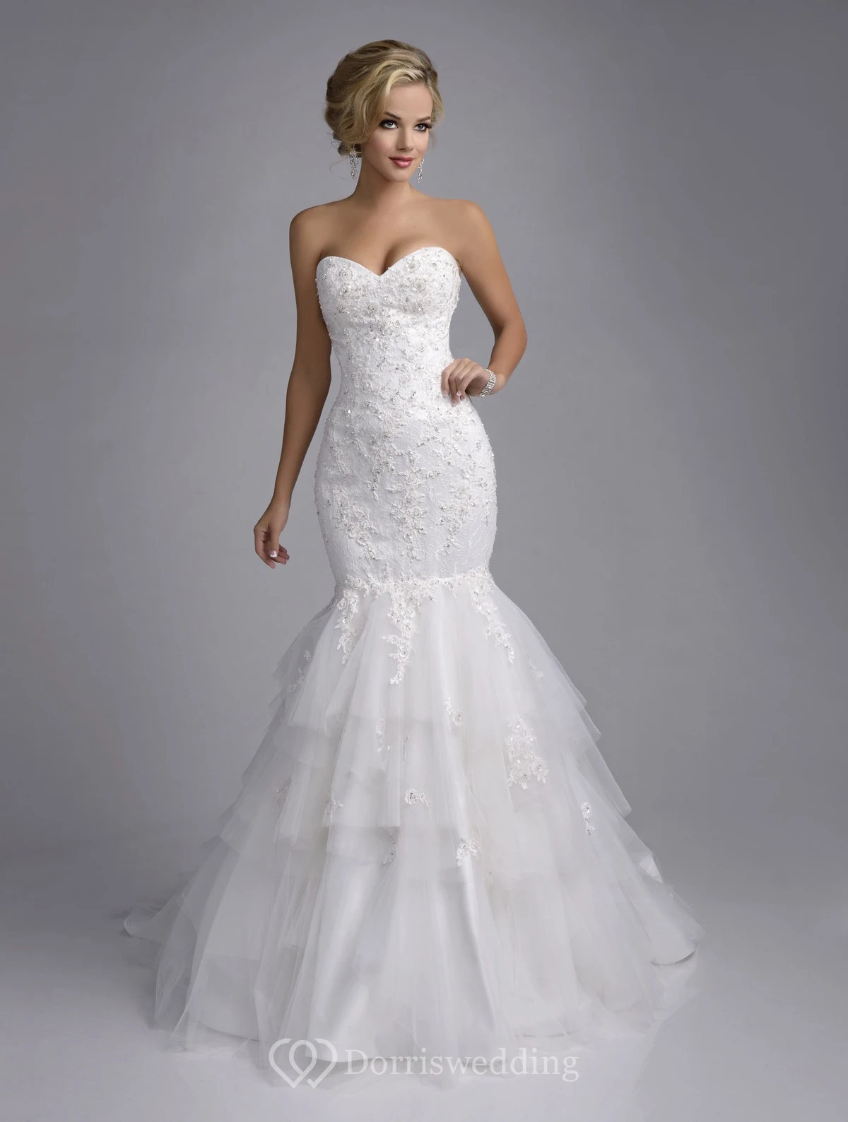 Mermaid Lace And Tulle Sweetheart Wedding Dress With Layered Skirt