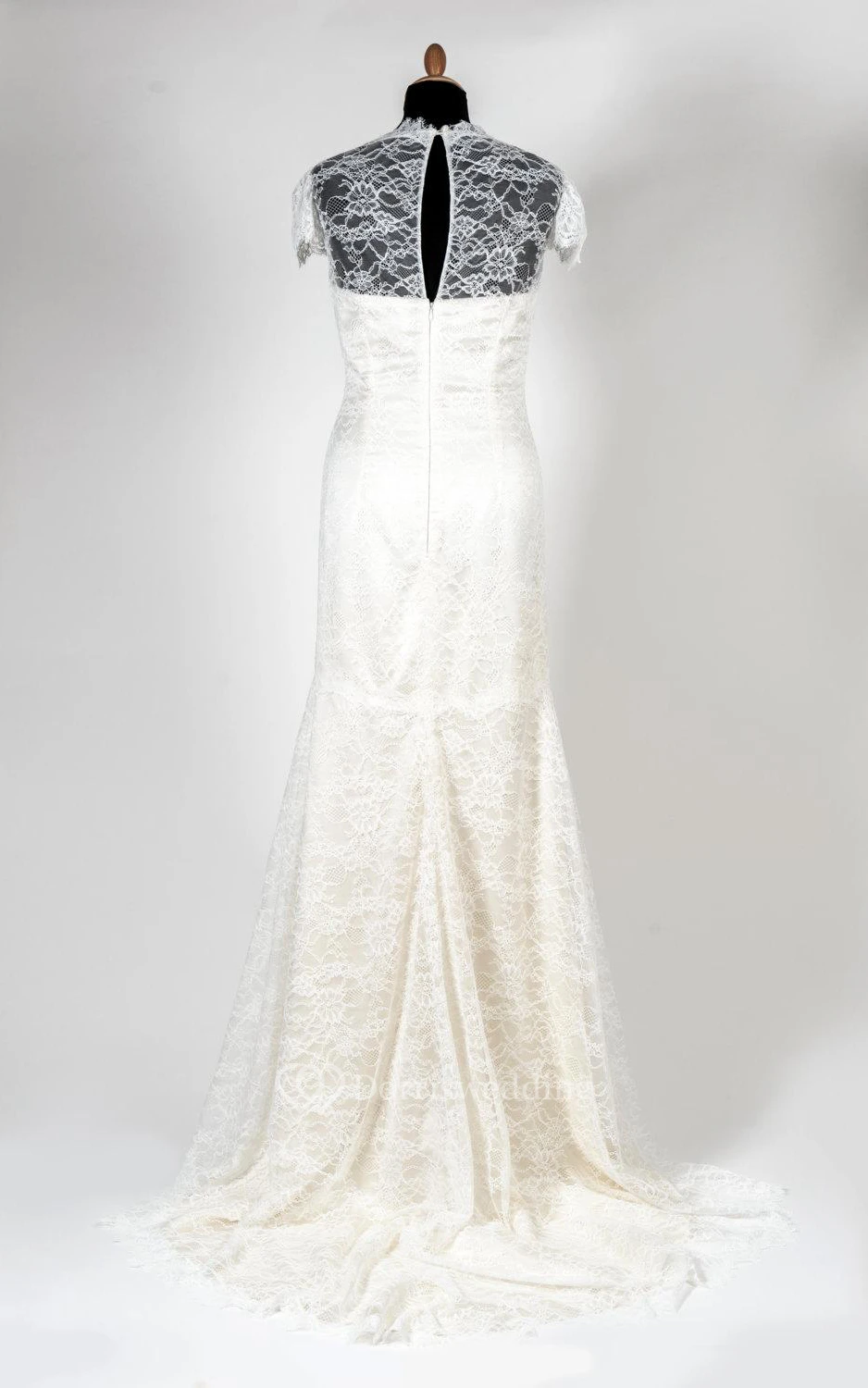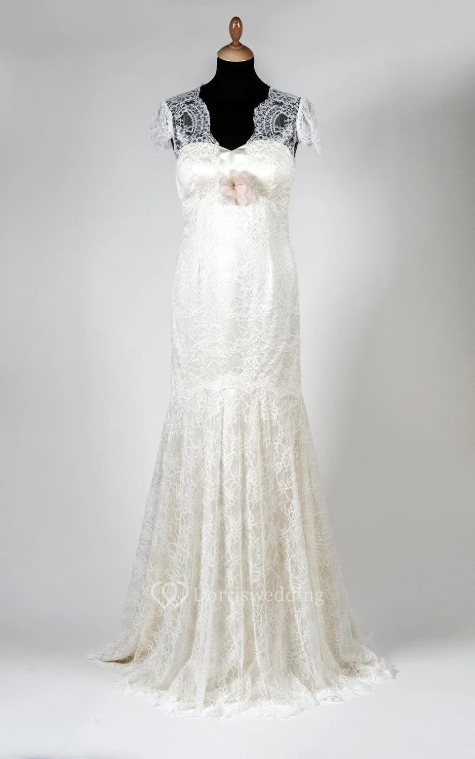 Mermaid Lace Short Sleeve Dress With Flower and Illusion Back