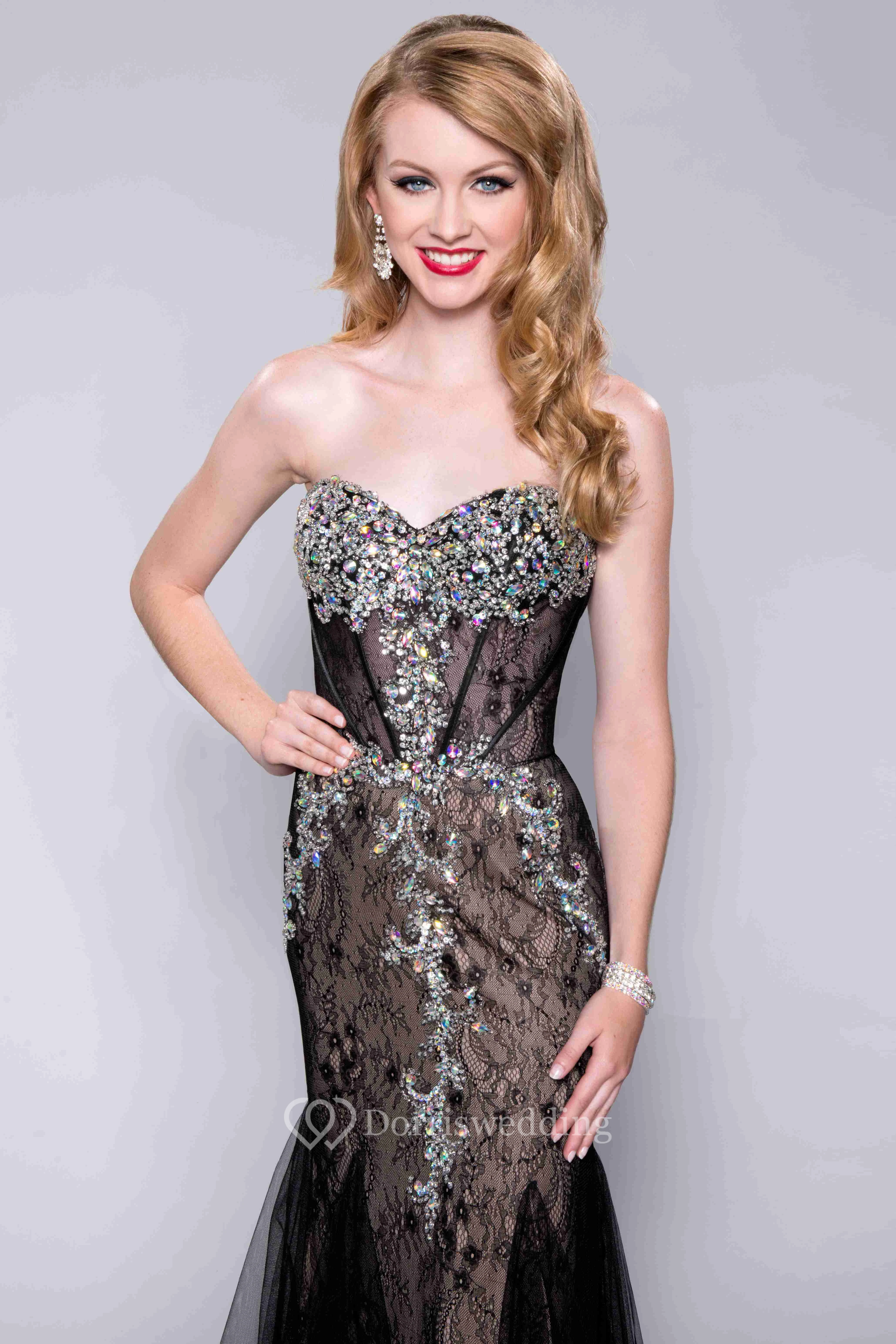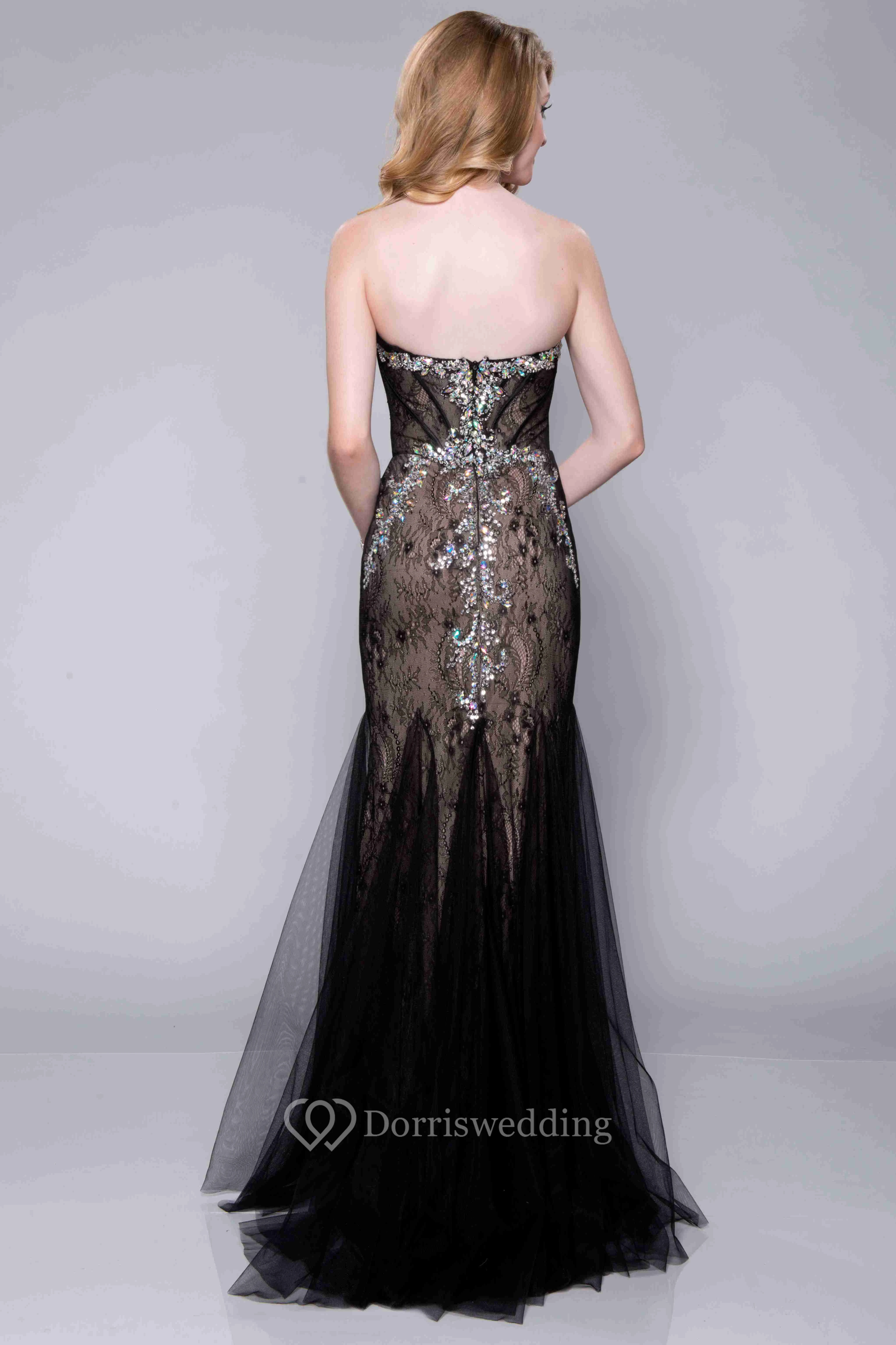 Mermaid Lace Sweetheart Prom Dress With Tulle Skirt And Crystal Embellishment