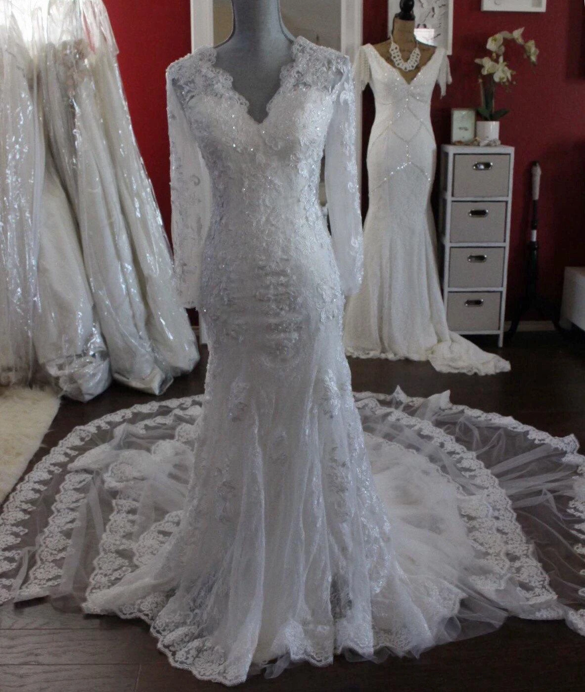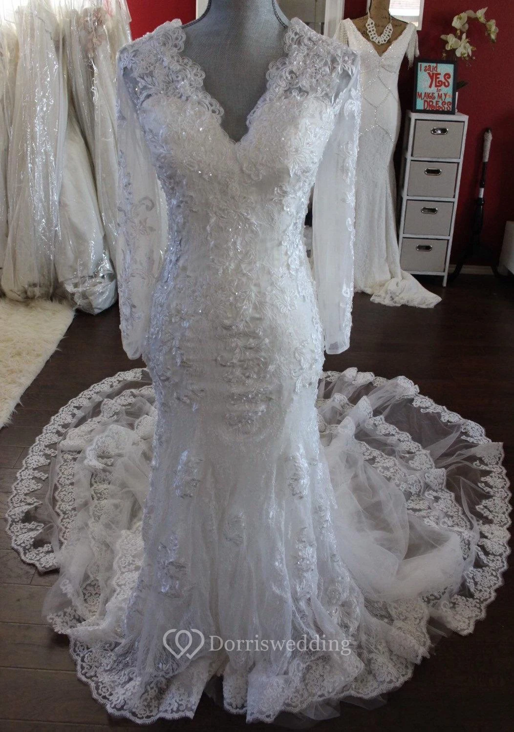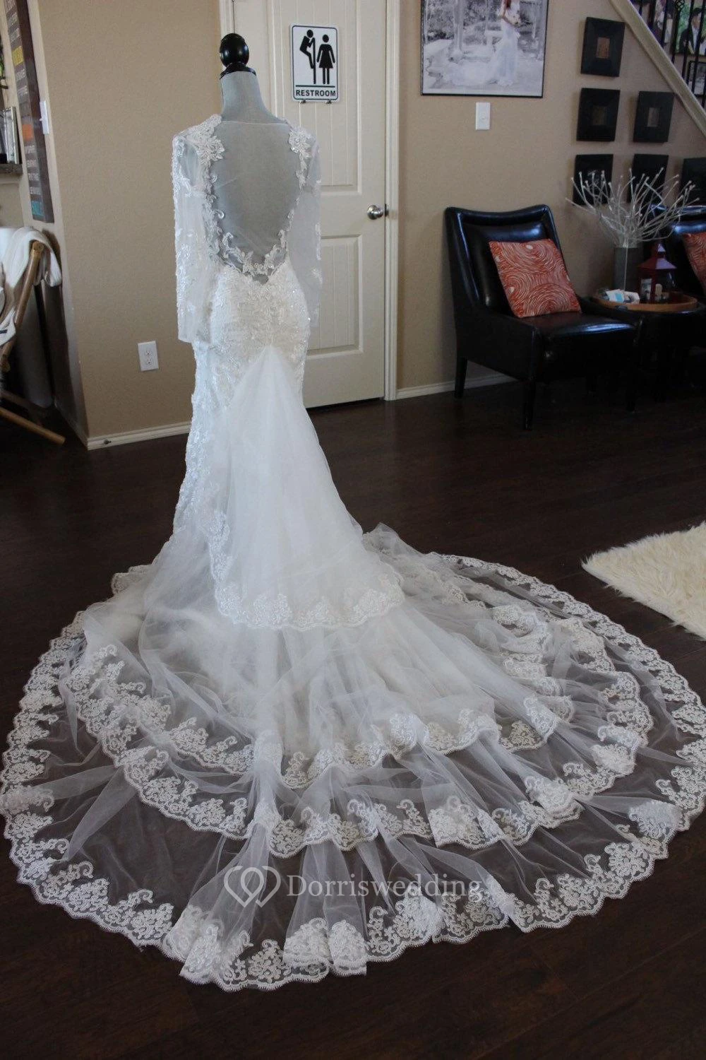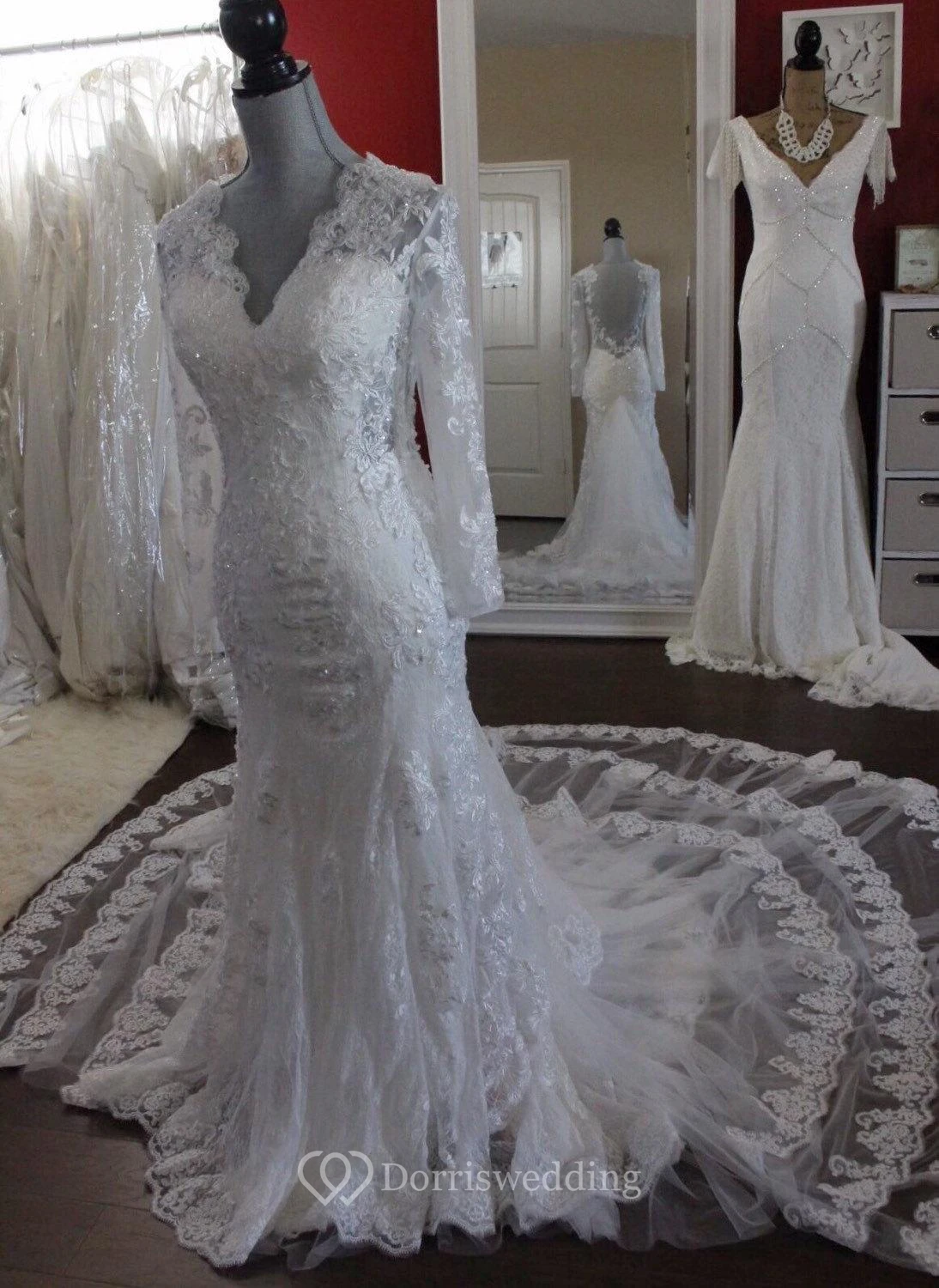 Mermaid Lace V-Neck Bridal Dress With Illusion Back