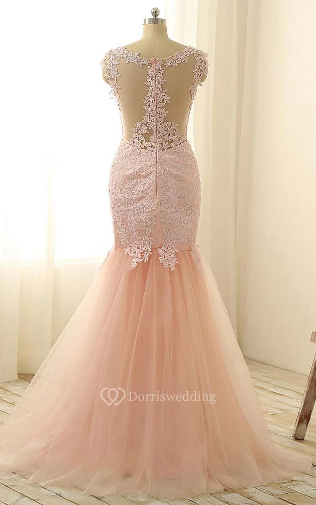 Mermaid Long Appliques Zipper Tulle Lace Dress
