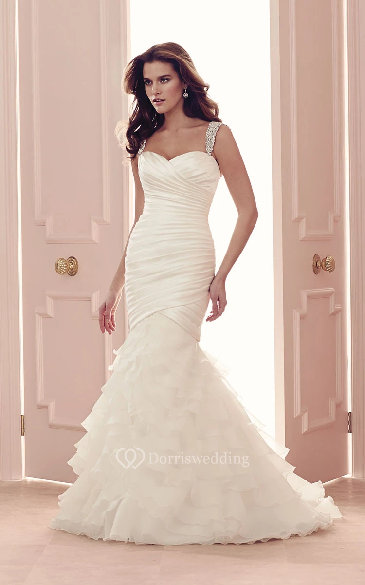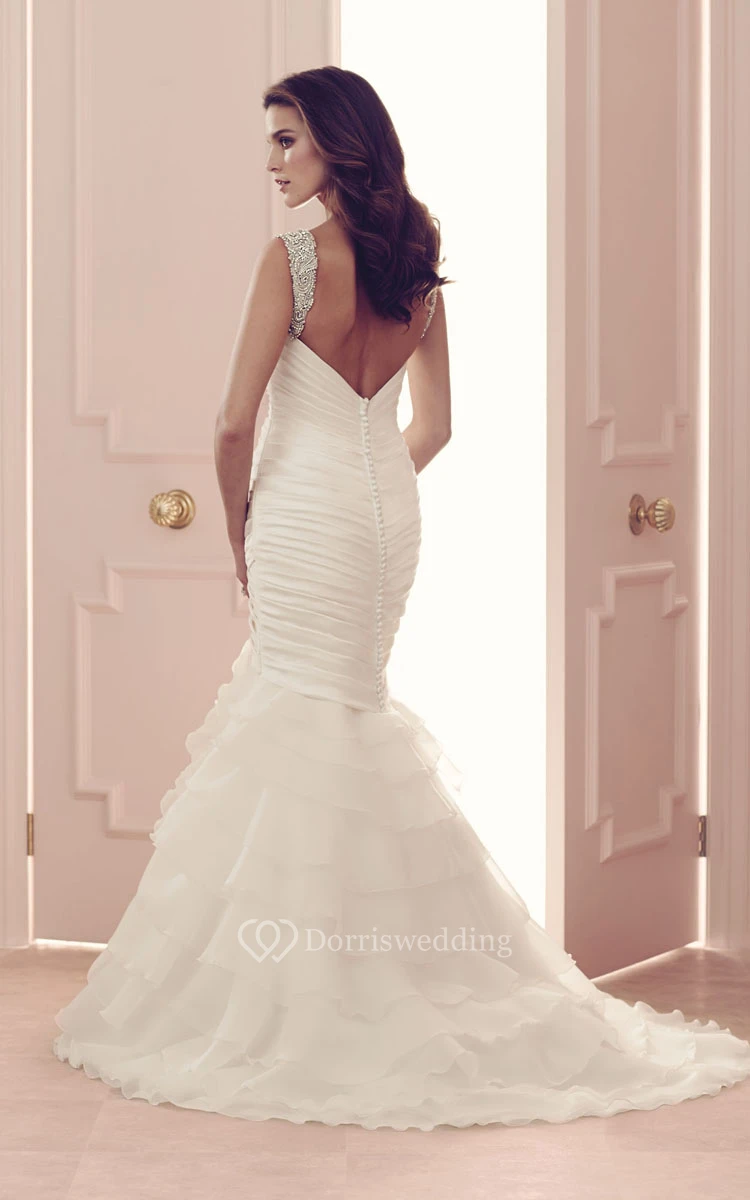 Mermaid Long Dress With Low-V Back And Cascading Ruffles