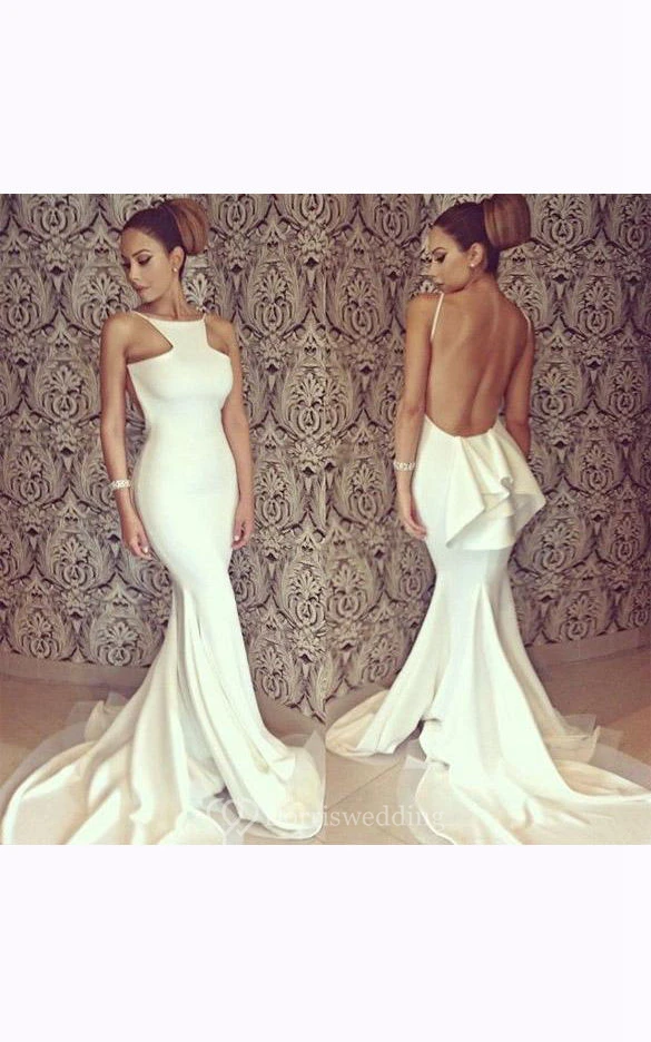 Mermaid Long High-neck Sleeveless Backless Chiffon Dress