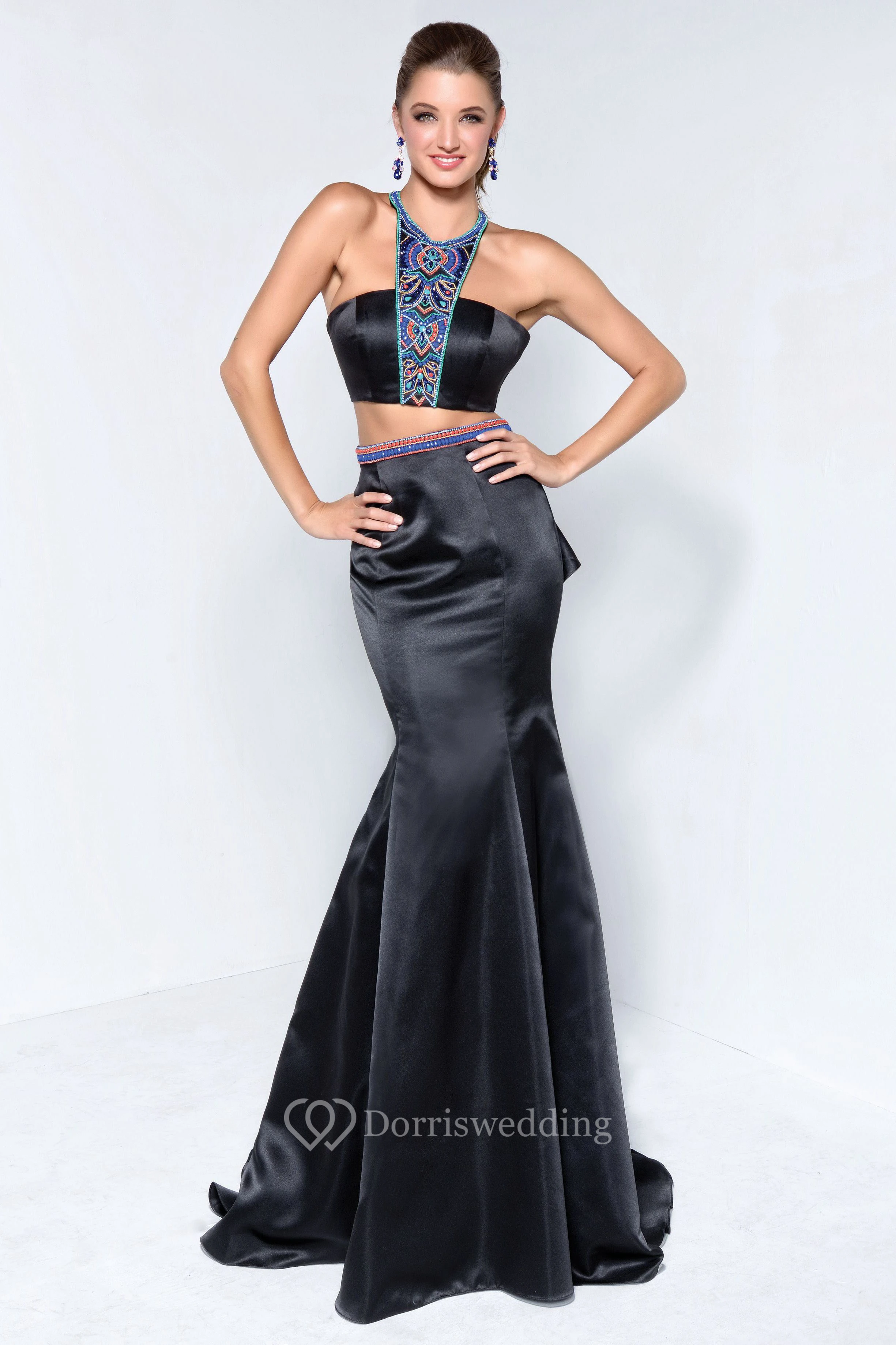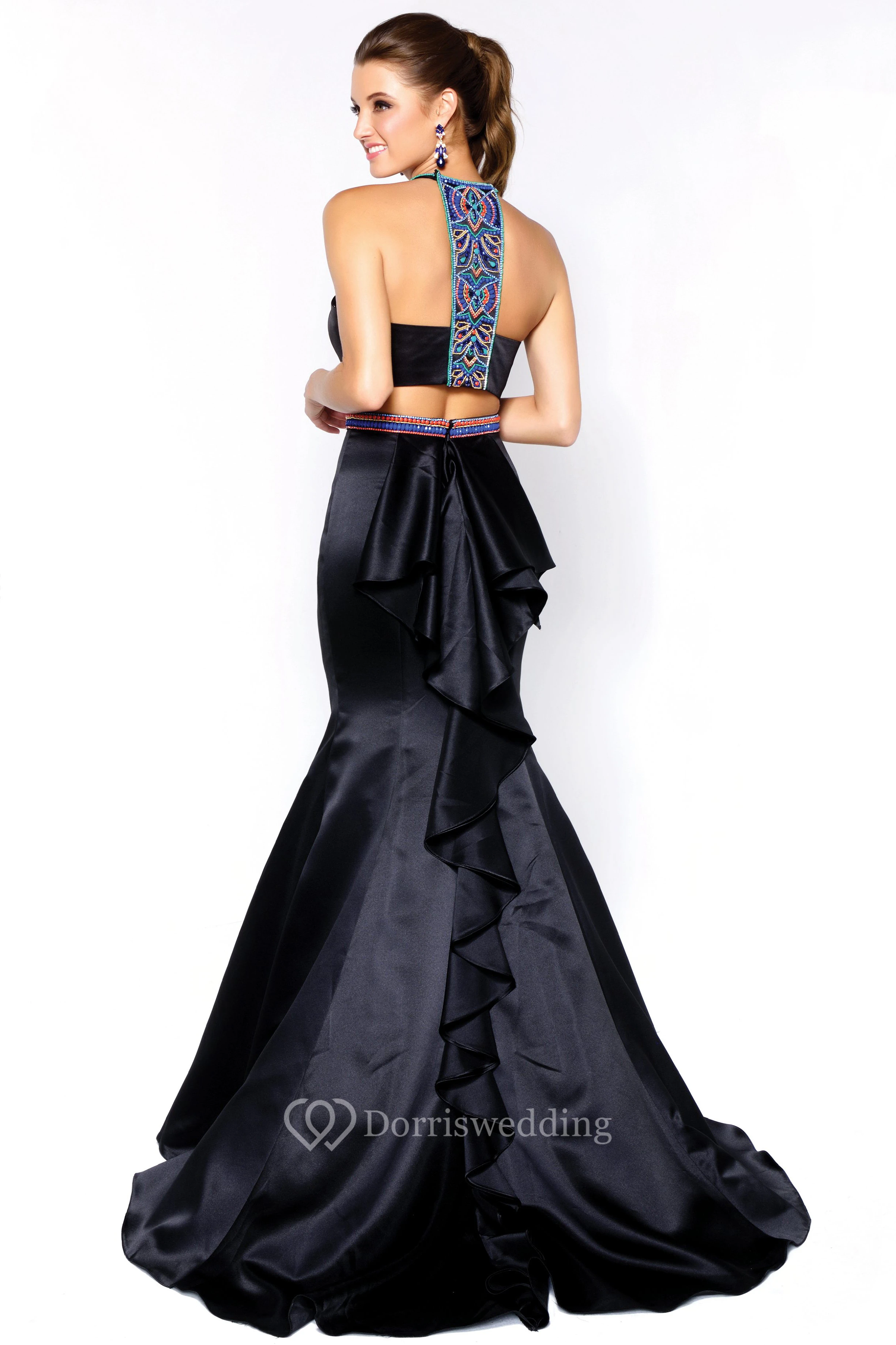 Mermaid Long Jewel-Neck Sleeveless Satin Court Train Dress With Beading And Draping