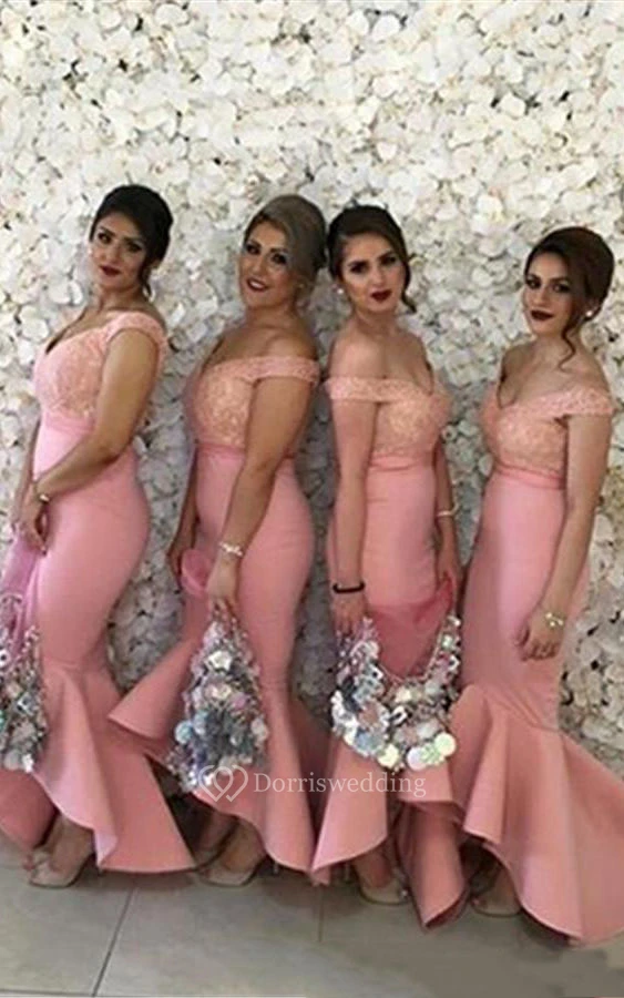 Mermaid Long Off-the-shoulder Lace Satin Dress with Ruffles