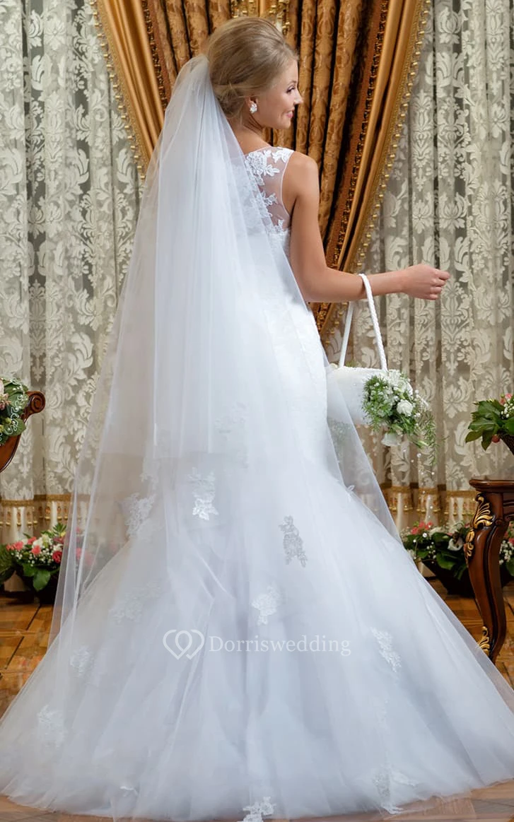 Mermaid Long Scoop Sleeveless Illusion Tulle Dress With Appliques
