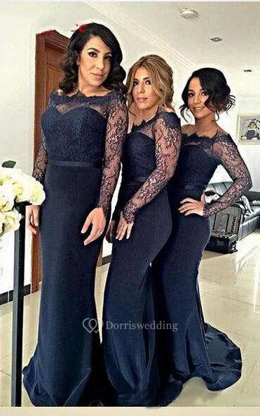 Mermaid Long Sleeve Bell Illusion Brush Train Zipper Chiffon Lace Dress