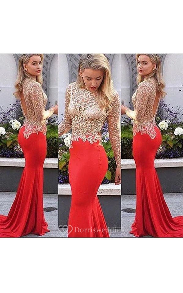 Mermaid Long Sleeve Chiffon Lace Keyhole Dress