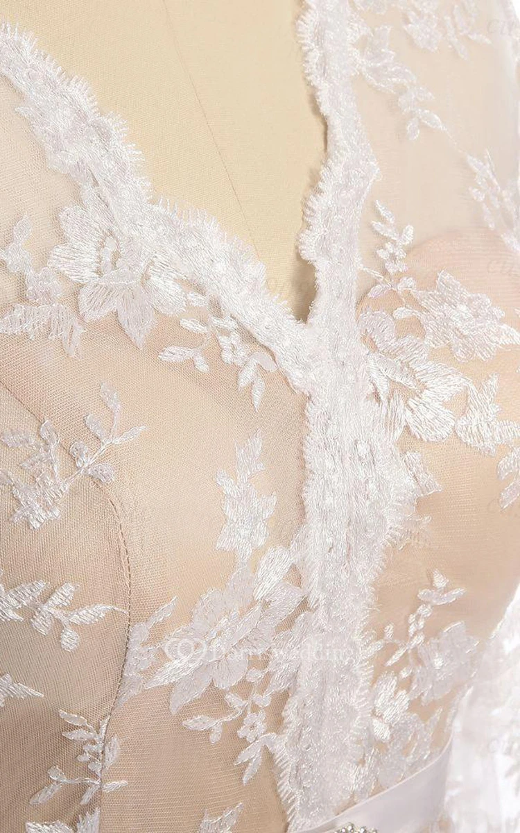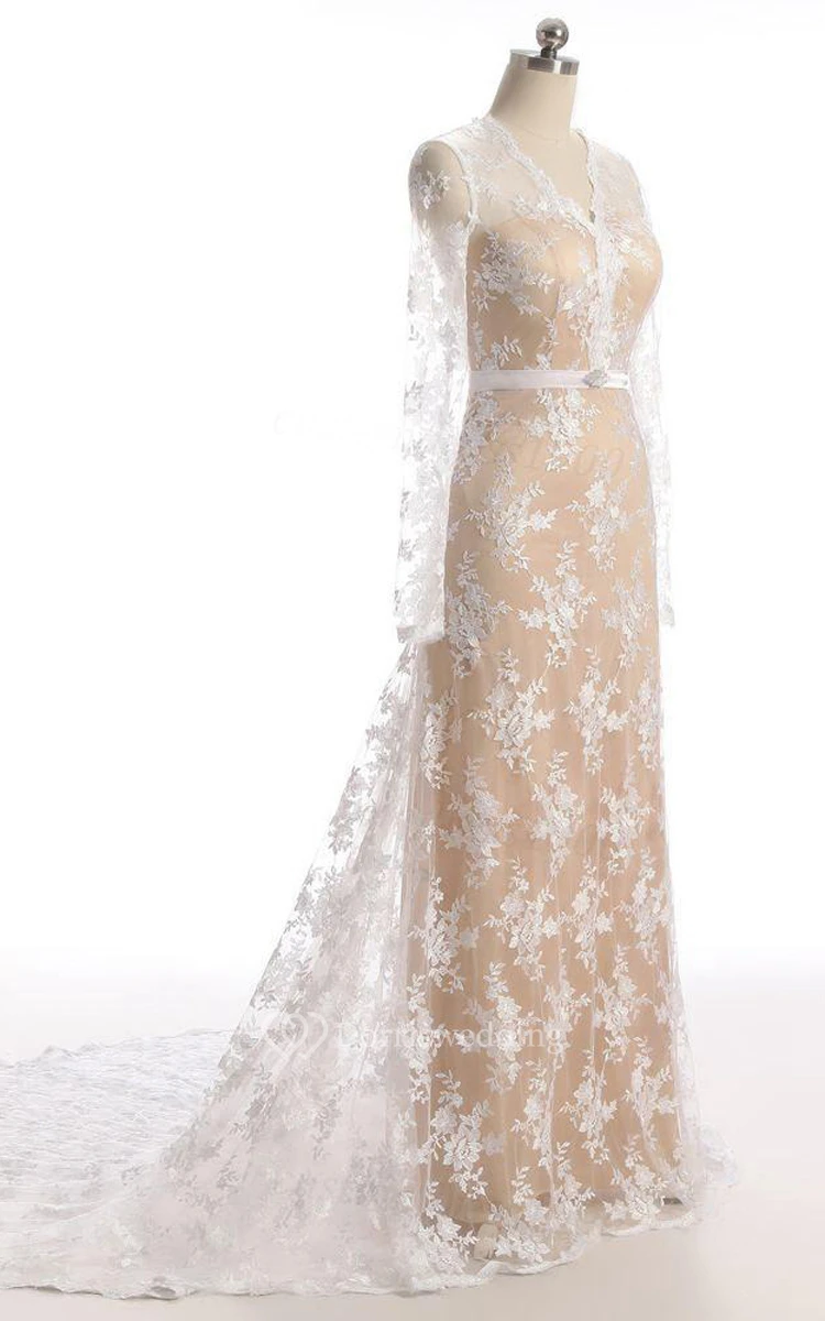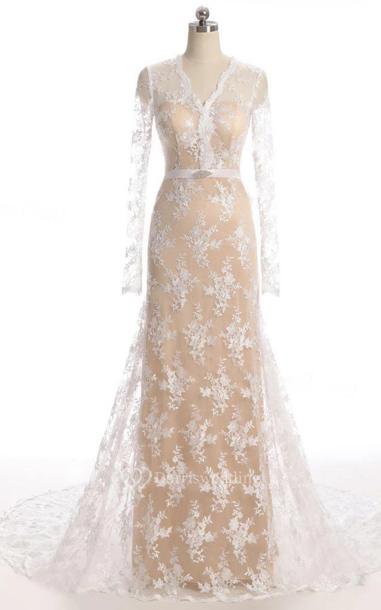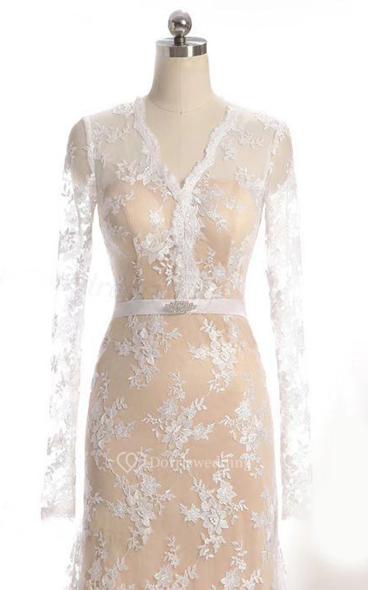 Mermaid Long Sleeve Court Train Lace Dress With Illusion