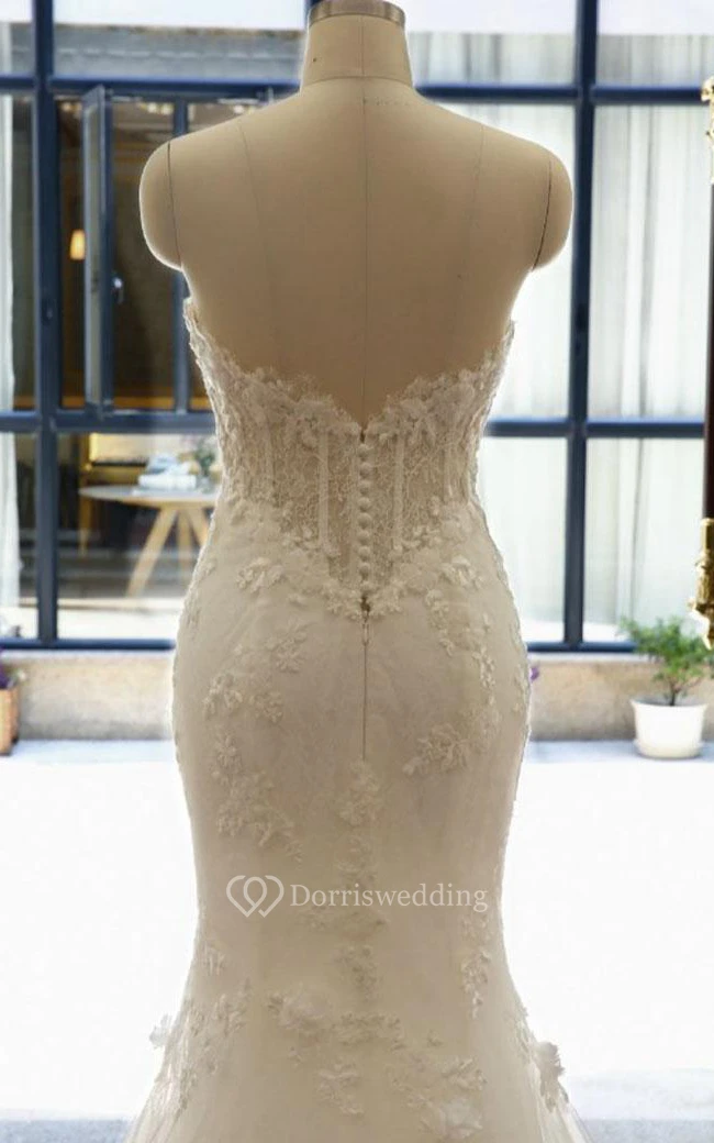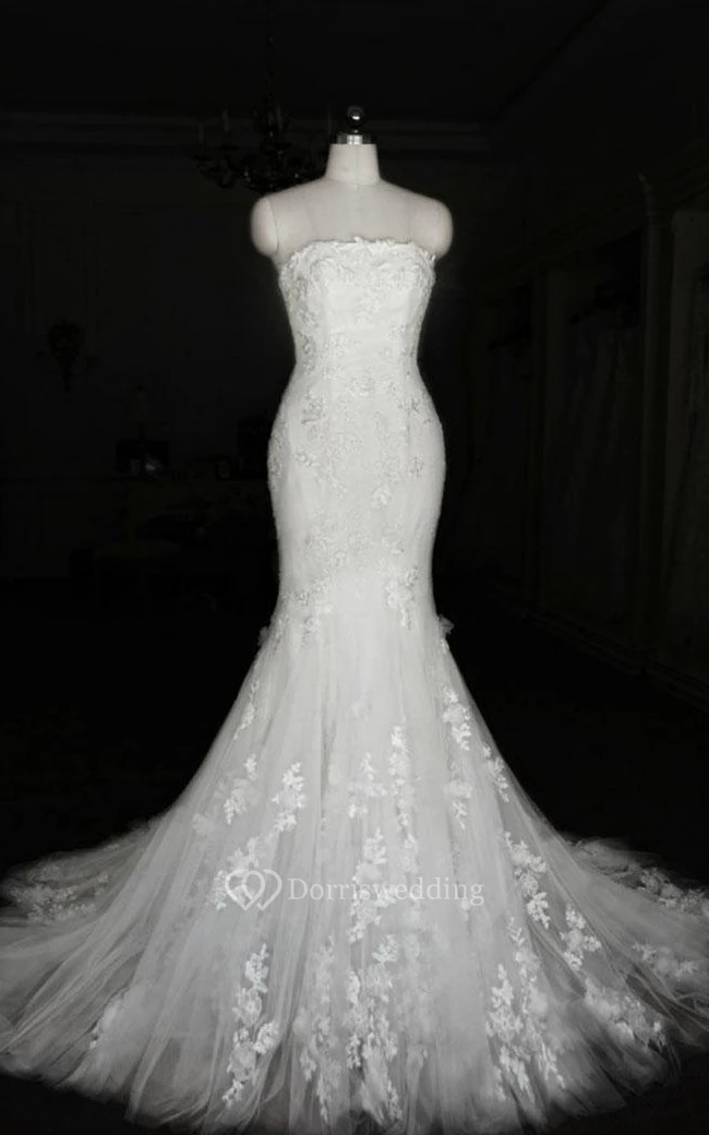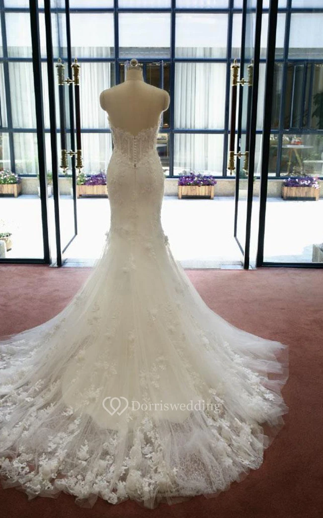 Mermaid Long Straps Sleeveless Bell Appliques Flower Zipper Straps Keyhole Tulle Lace Dress