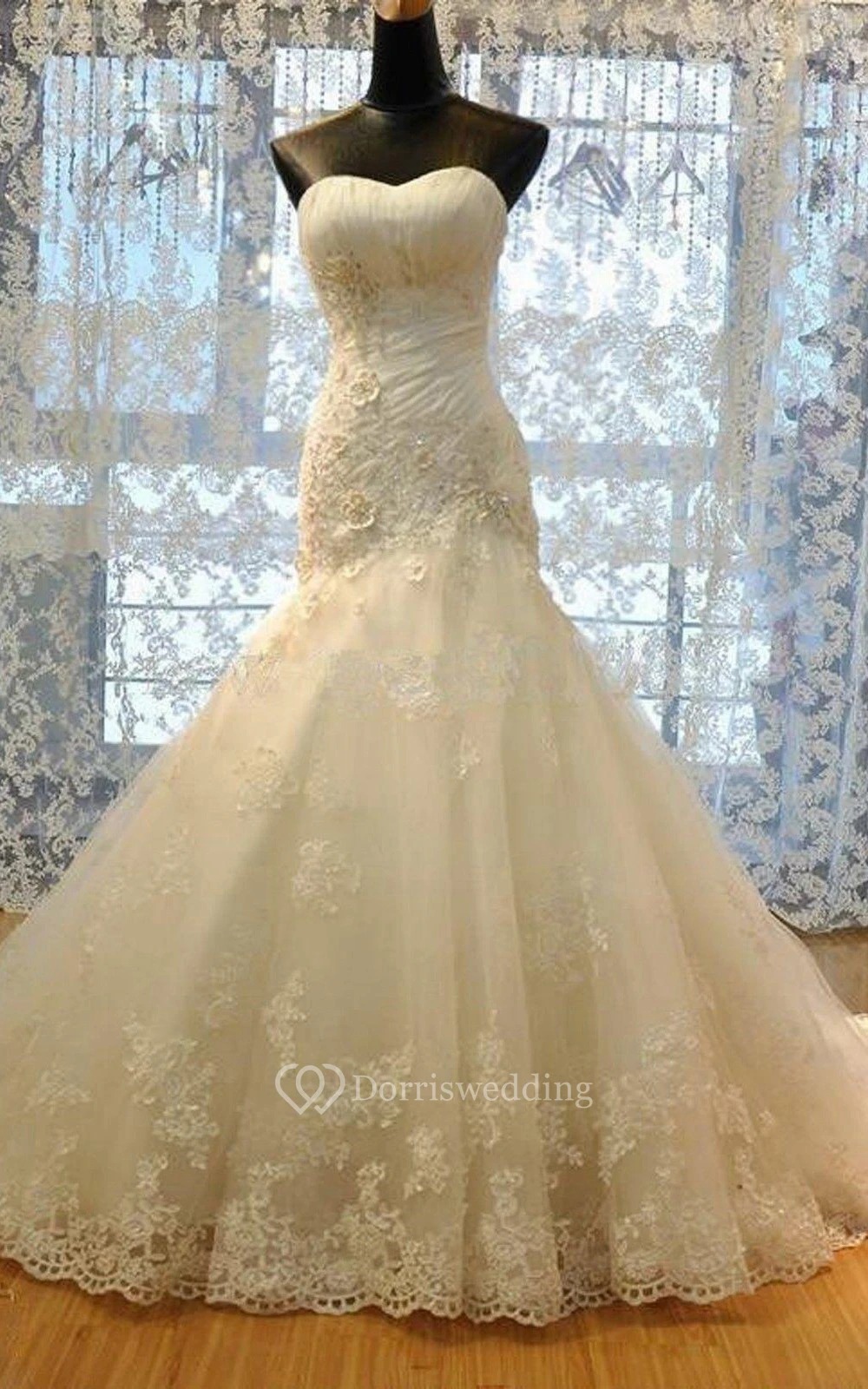 Mermaid Long Straps Sleeveless Bell Ruffles Lace-Up Back Straps Lace Organza Satin Dress