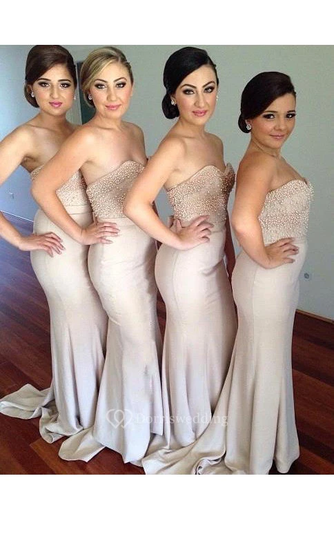Mermaid Long Sweetheart Bell Draping Pleats Beading Chiffon Dress