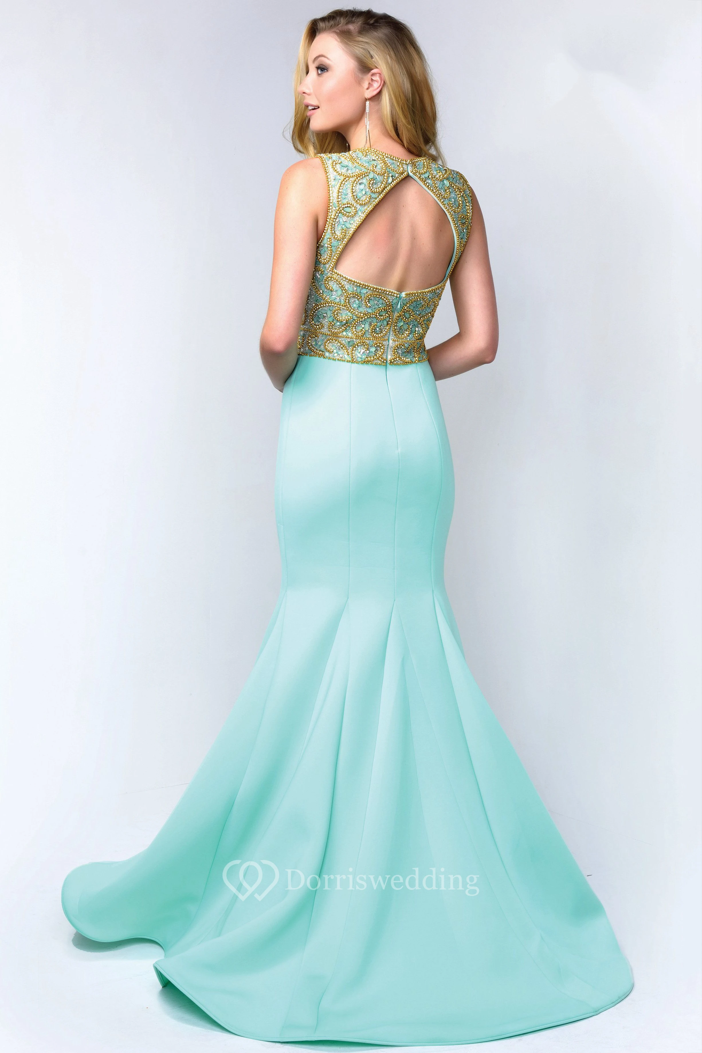 Mermaid Long V-Neck Sleeveless Satin Keyhole Dress With Beading