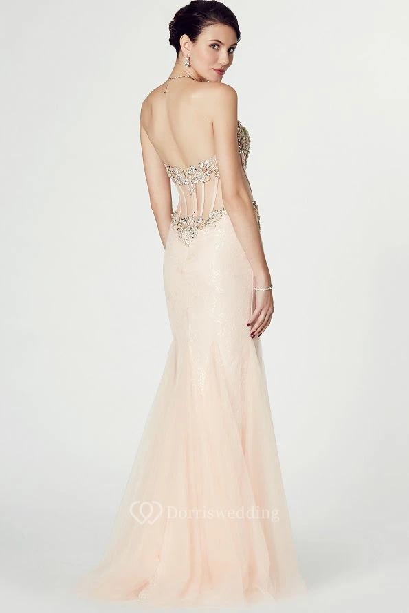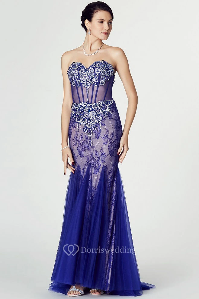 Mermaid Maxi Appliqued Sweetheart Sleeveless Tulle Prom Dress