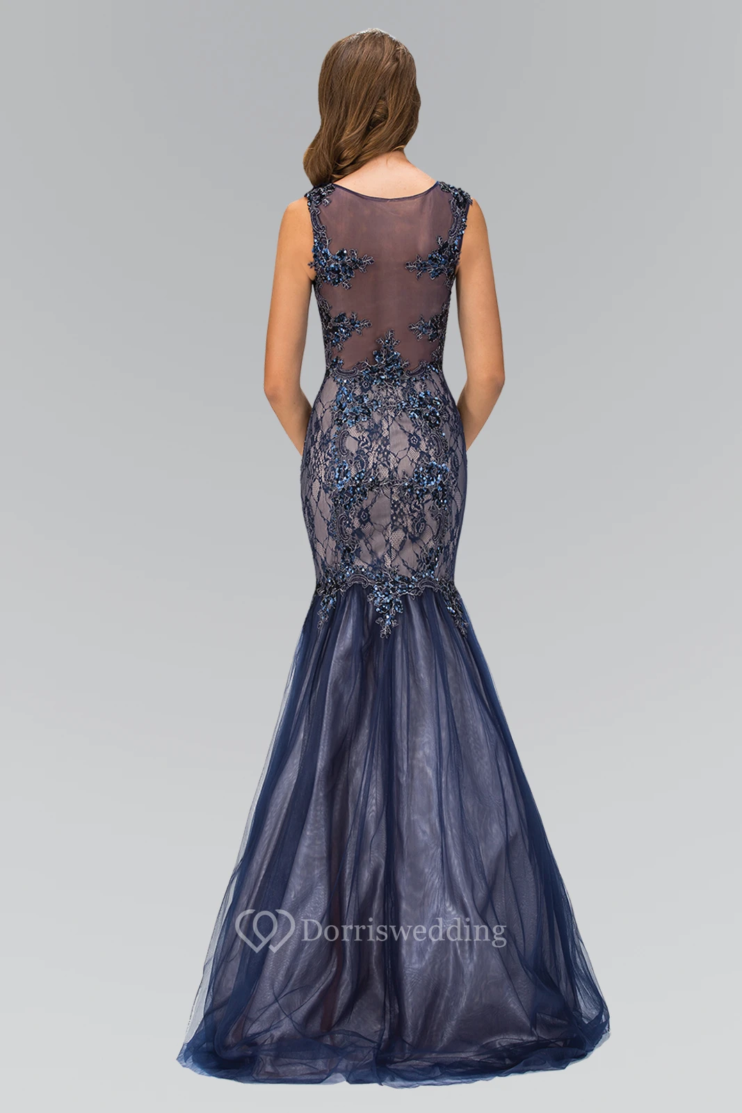 Mermaid Maxi Scoop-Neck Sleeveless Illusion Dress With Beading And Appliques