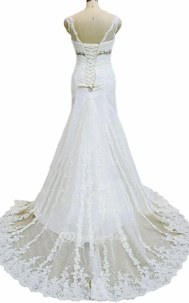 Mermaid Mini Spaghetti Straps V-Neck Beading Appliques Flower Zipper Lace-Up Back Straps Chiffon Tulle Lace Satin Dress