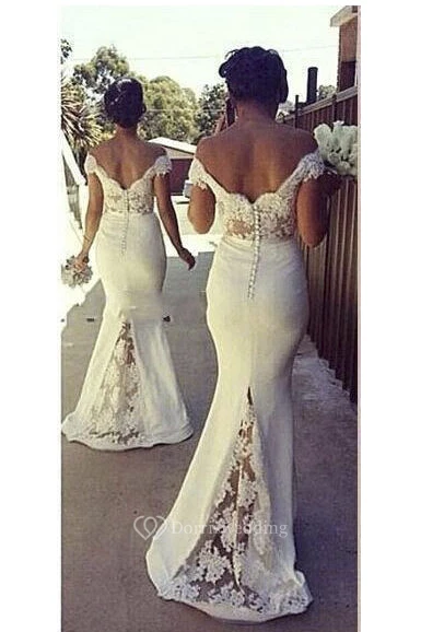 Mermaid Off-the-shoulder Appliques Backless Lace Spandex Dress