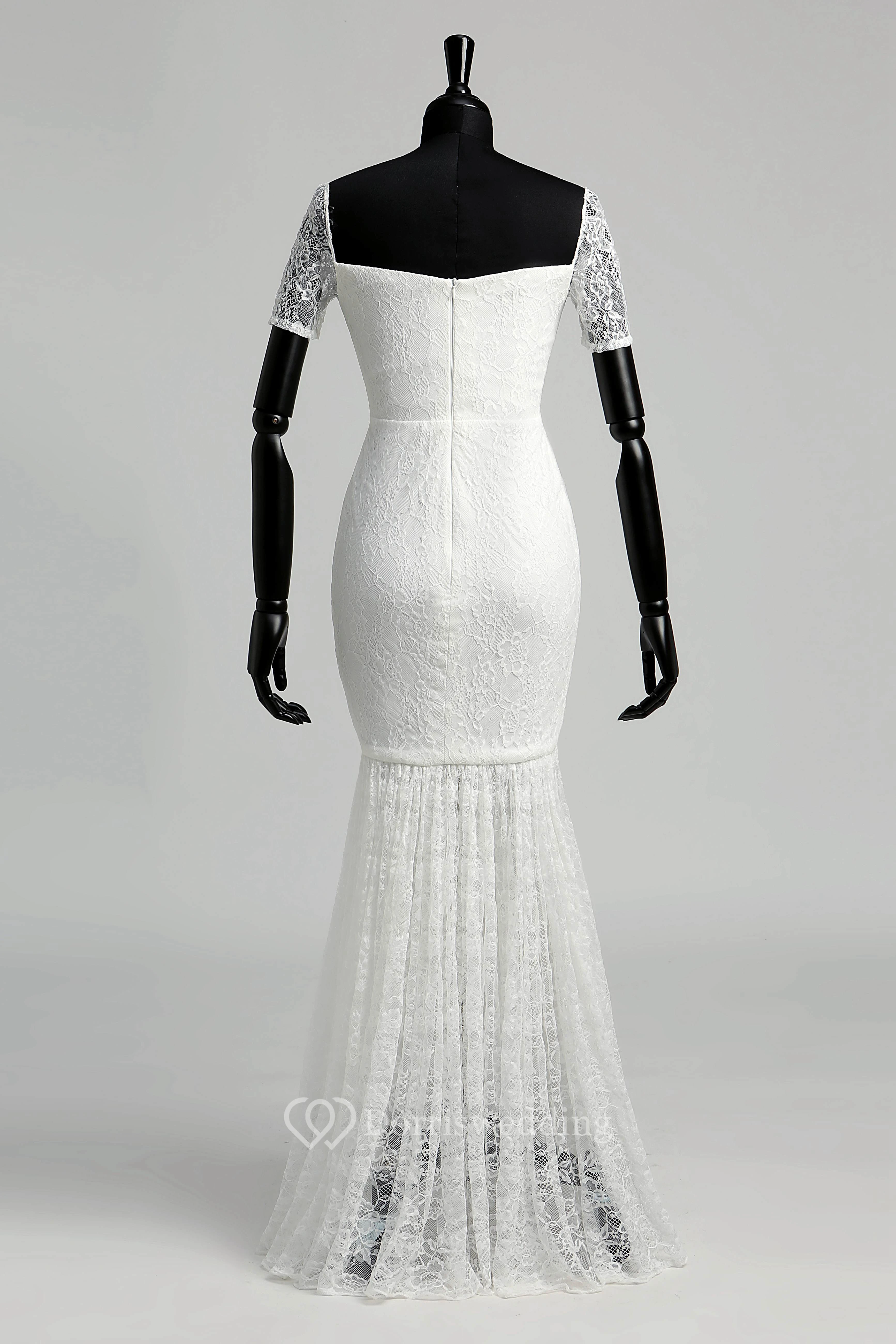 Mermaid Off-the-shoulder Illusion Short Sleeve Floor-length Lace Wedding Dress