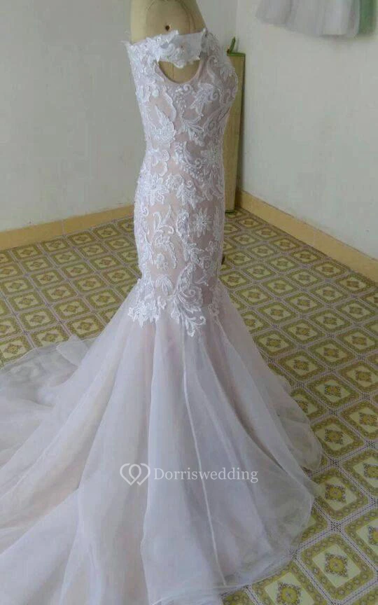 Mermaid Off-The-Shoulder Lace Dress With Organza Skirt