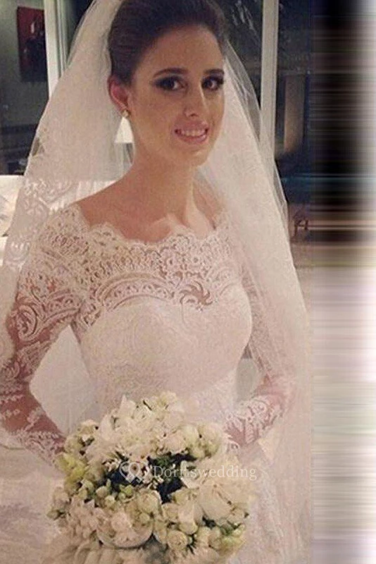 Mermaid Scoop Long Sleeves Lace Court Train Tulle Wedding Dresses