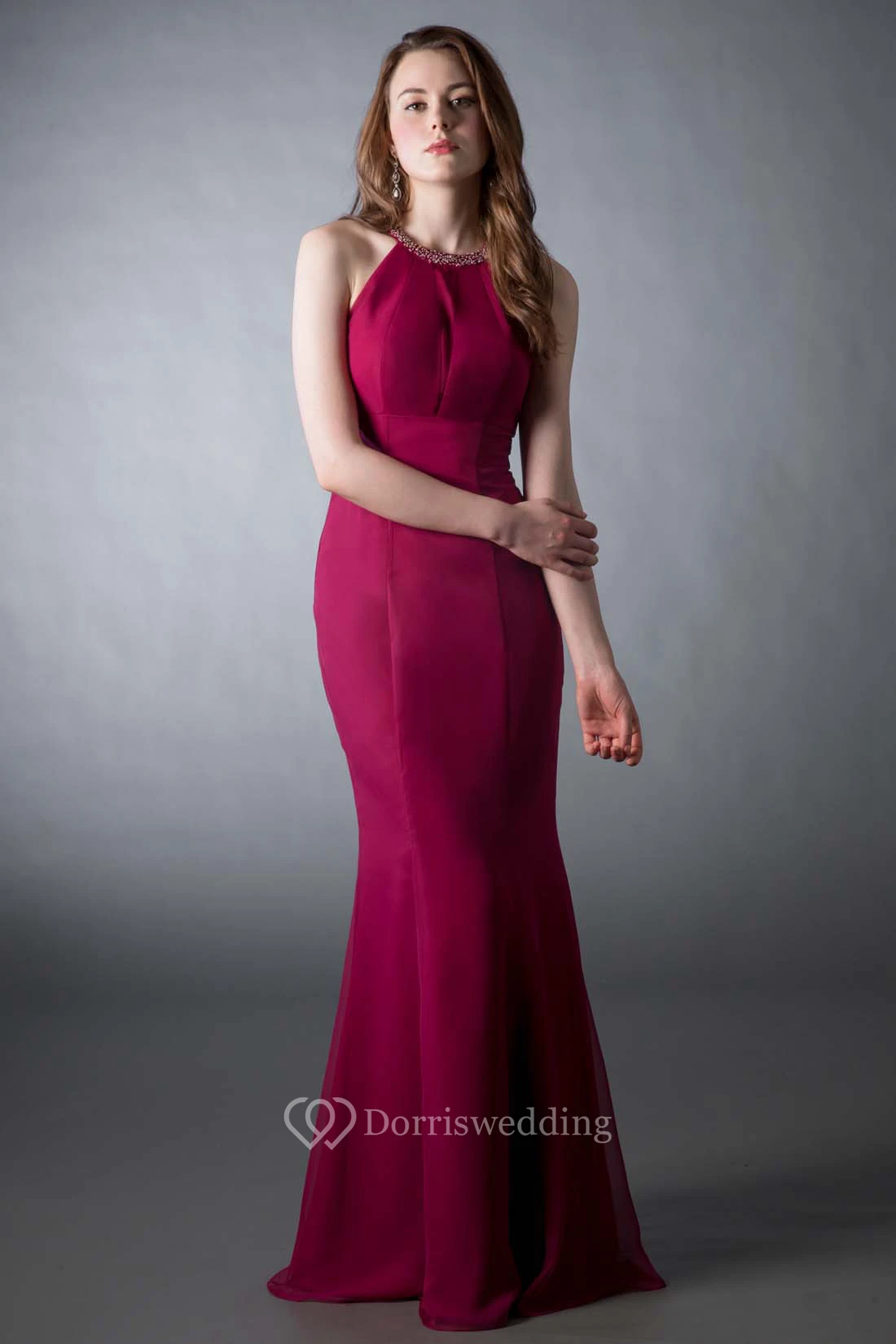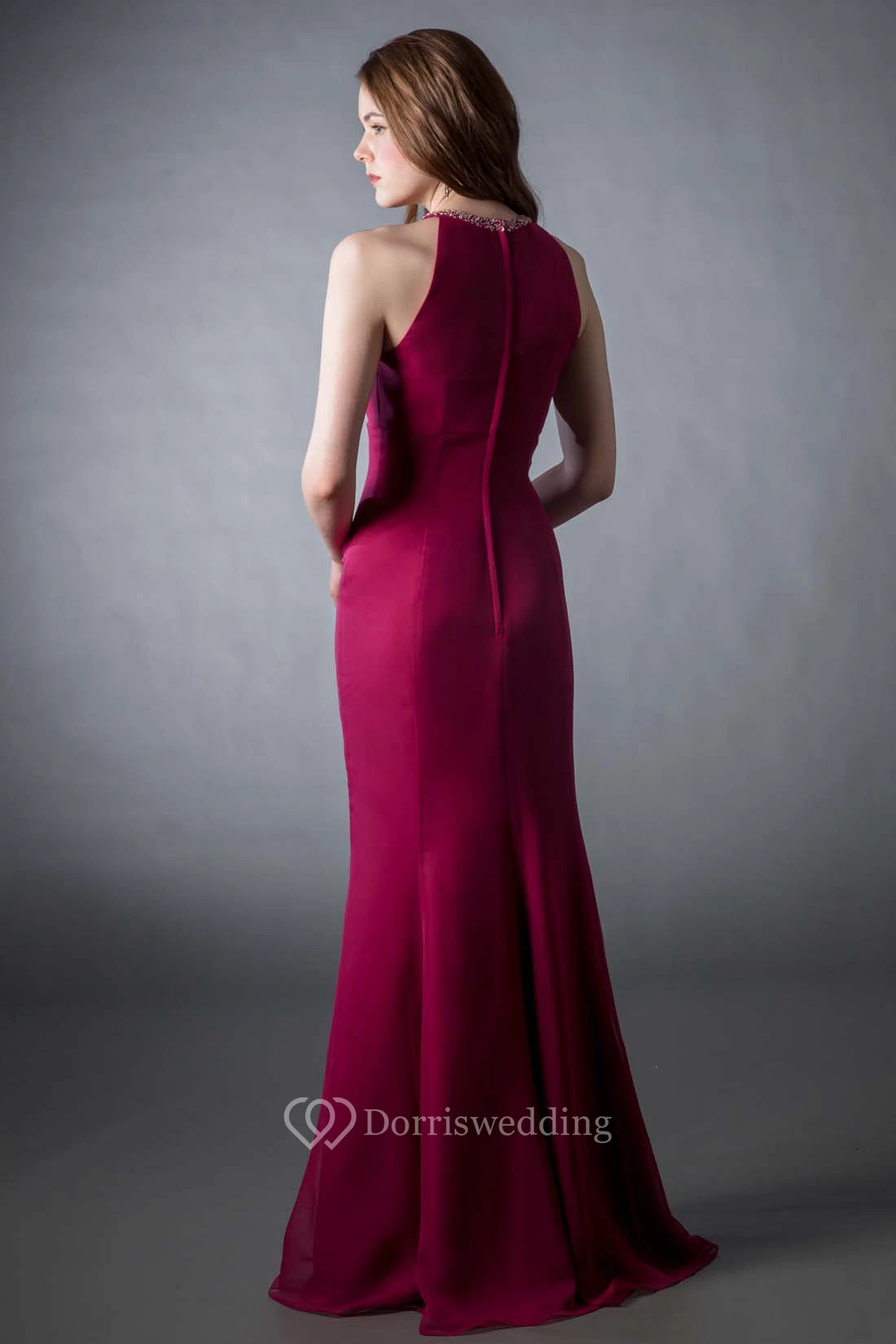 Mermaid Scoop Neck Sleeveless Beaded Chiffon Prom Dress