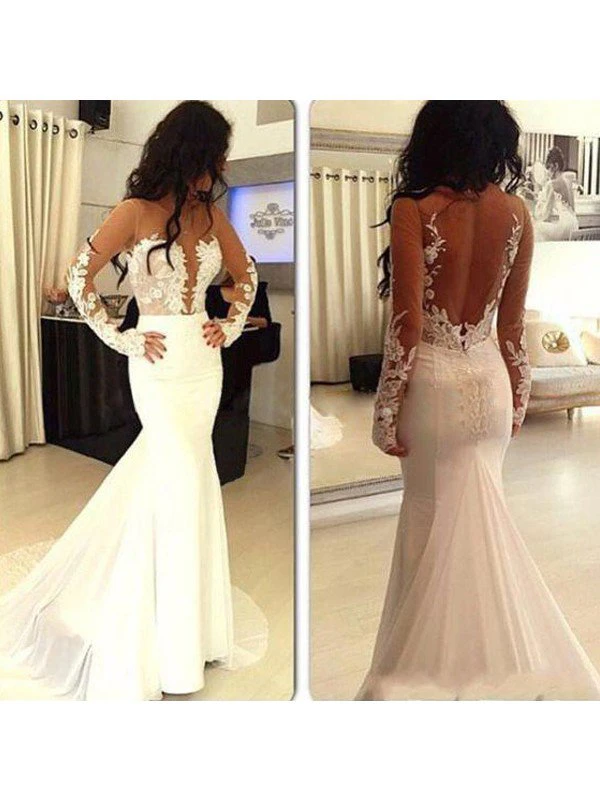 Mermaid Scoop Satin Long Sleeves Applique Court Train Dresses