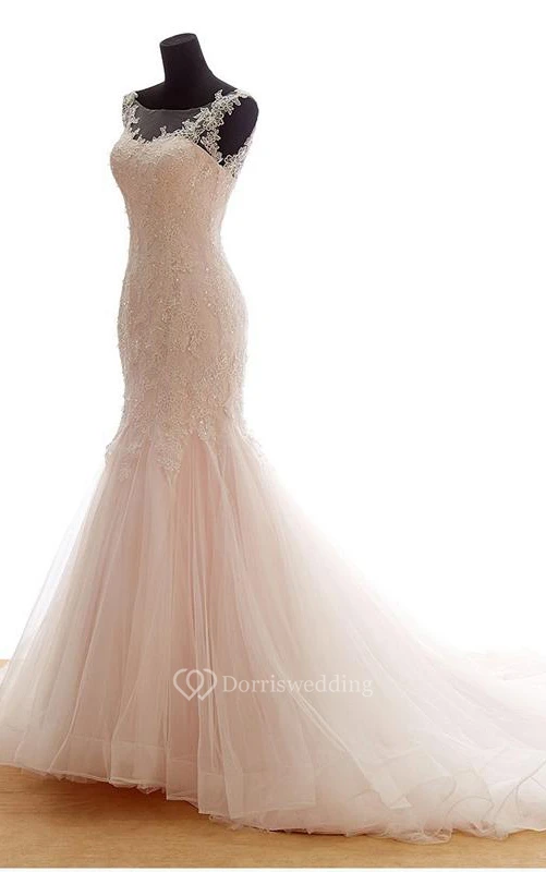 Mermaid Scoop Sleeveless Draping Bridal Dress