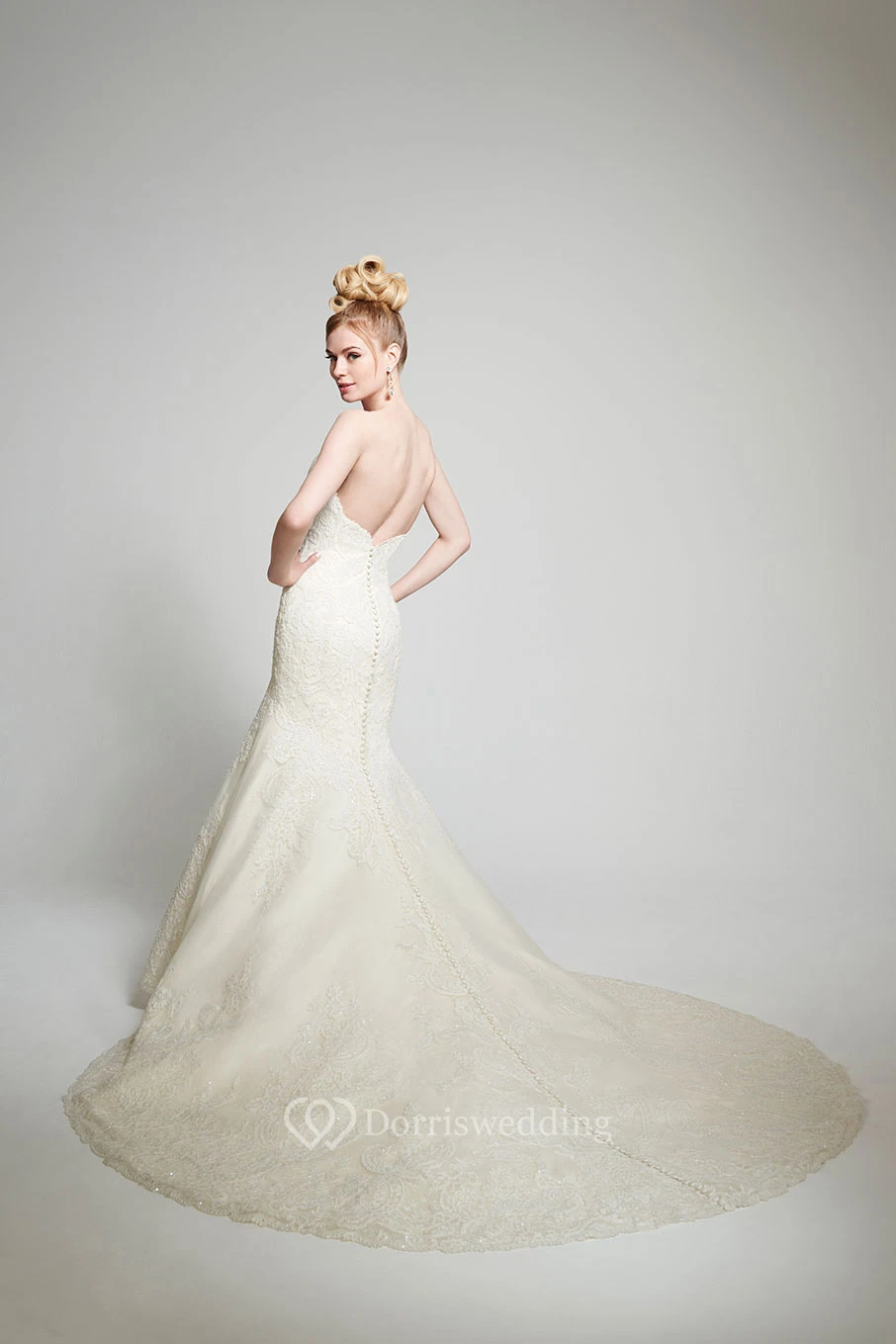 Mermaid Sequined Sweetheart Lace Wedding Dress With Deep-V Back