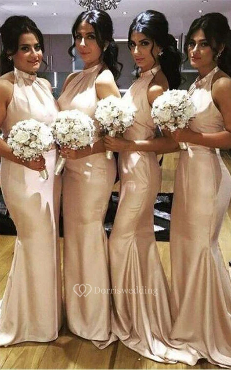 Mermaid Sheath Halter Sleeveless Taffeta Dress