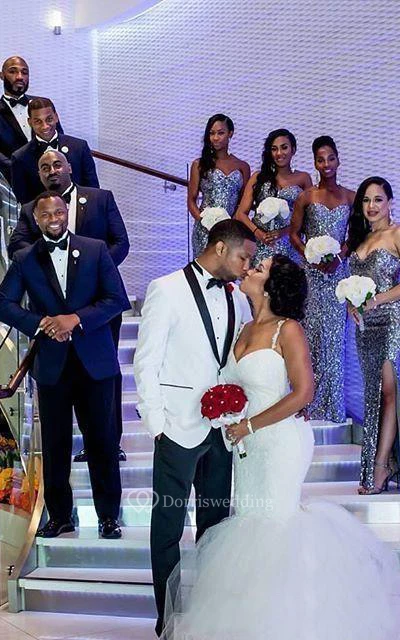 Mermaid Short Spaghetti Straps Sweetheart Sleeveless Bell Illusion Appliques Illusion Brush Train Backless Illusion Straps Keyhole Lace Dress