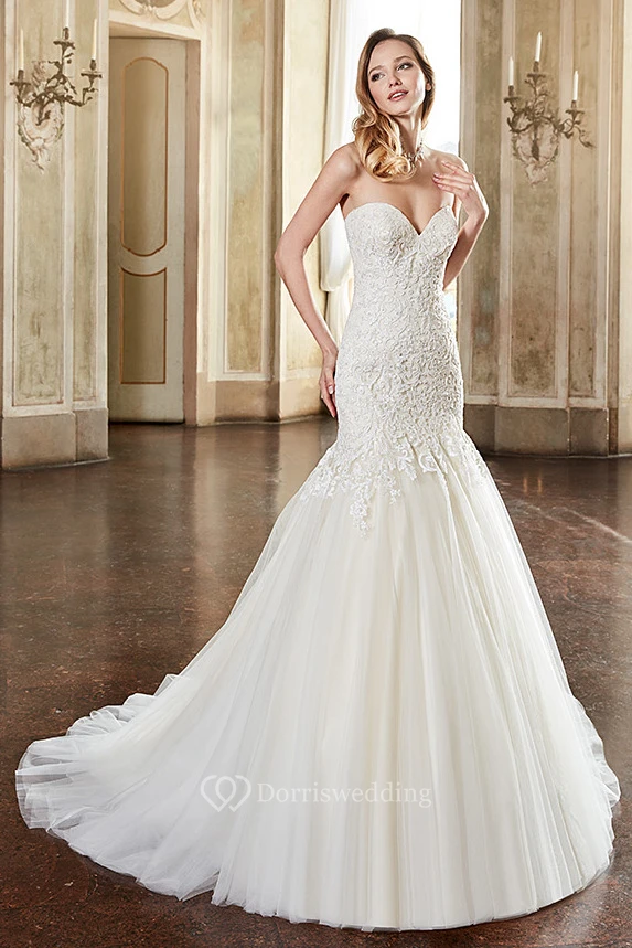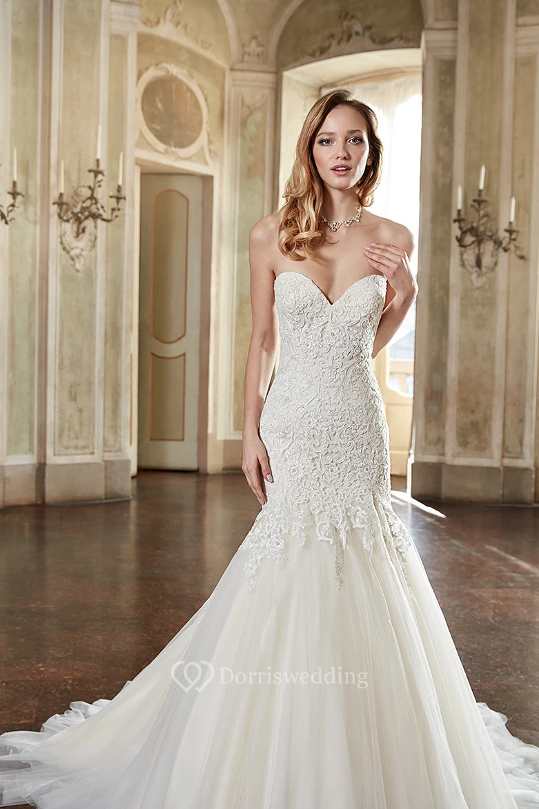 Mermaid Sleeveless Appliqued Maxi Sweetheart Lace&Tulle Wedding Dress