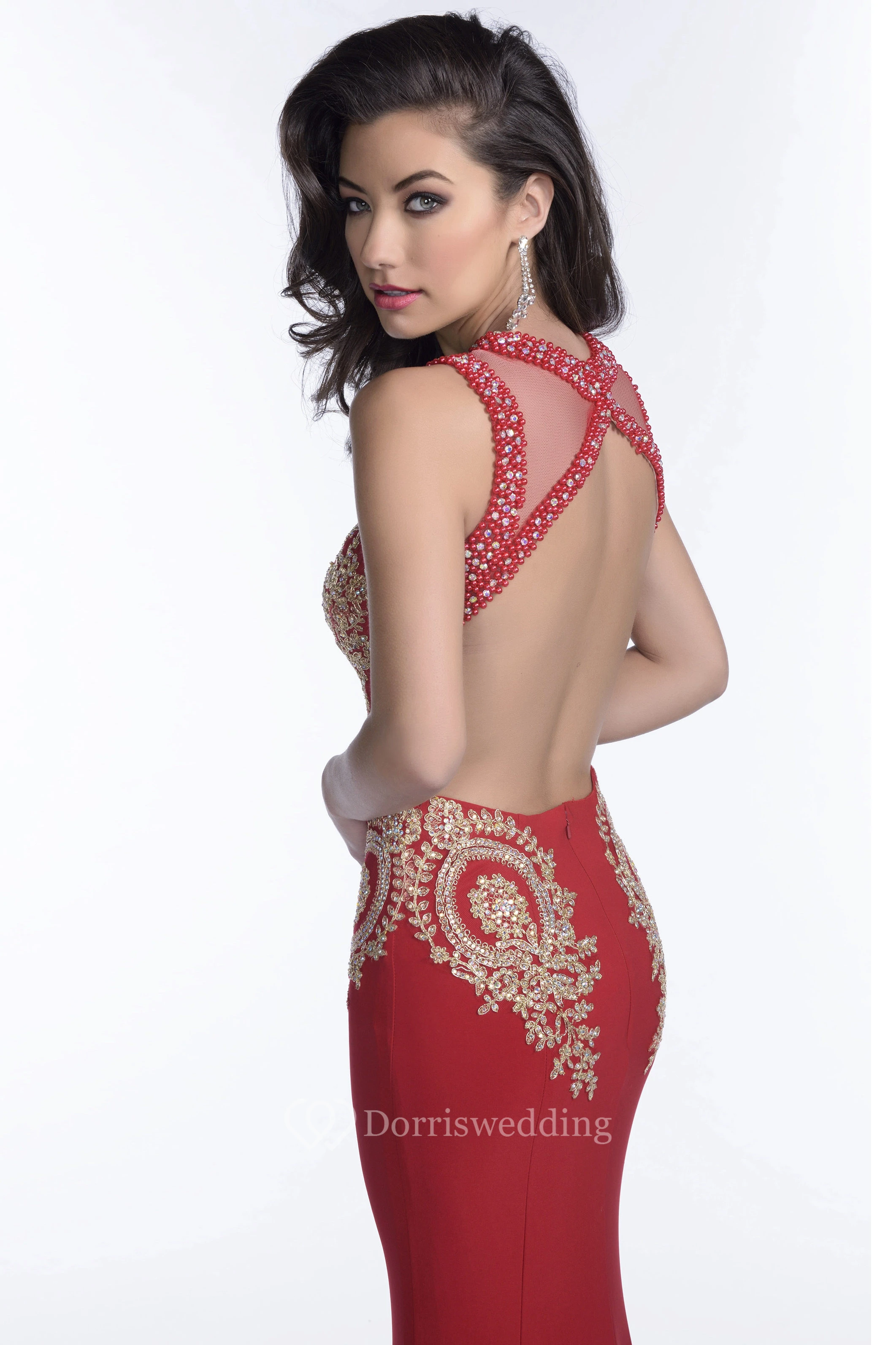 Mermaid Sleeveless Jersey Prom Dress With Keyhole Back And Rhinestone Bodice