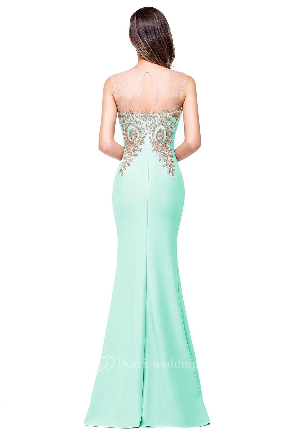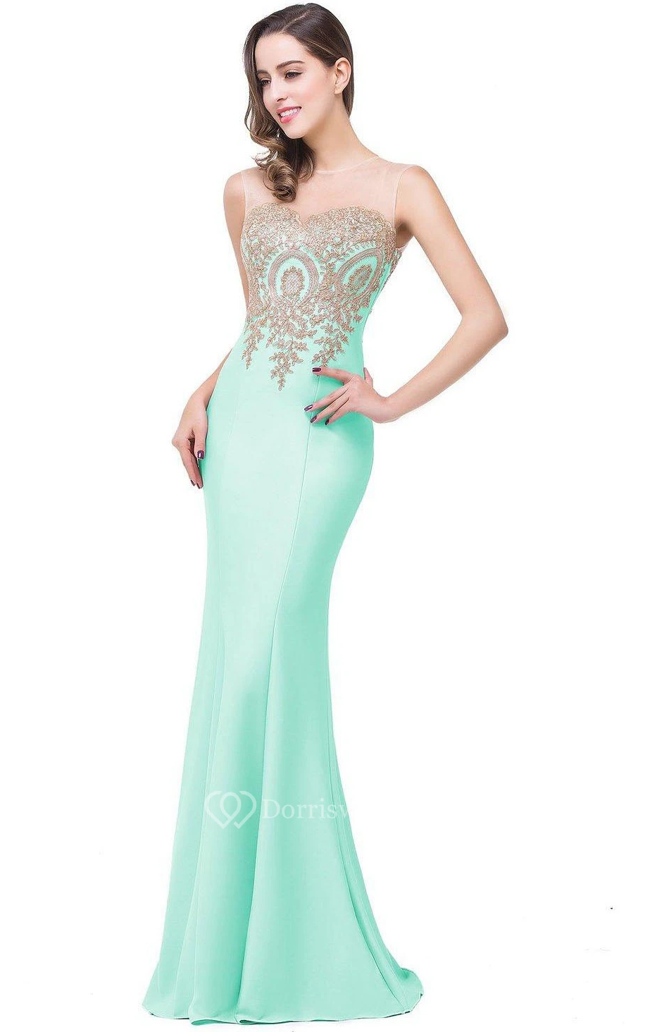Mermaid Sleeveless Mermaid Satin Lace Appliqued Dress