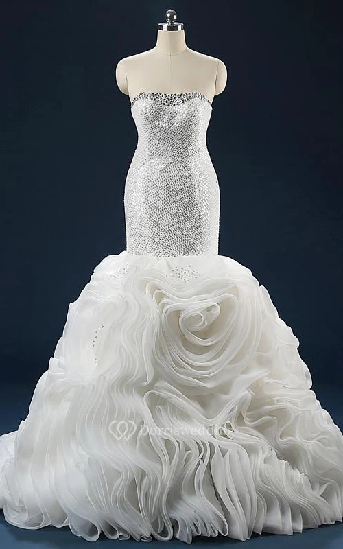 Mermaid Sleeveless Ruffles Sequins Organza Dress