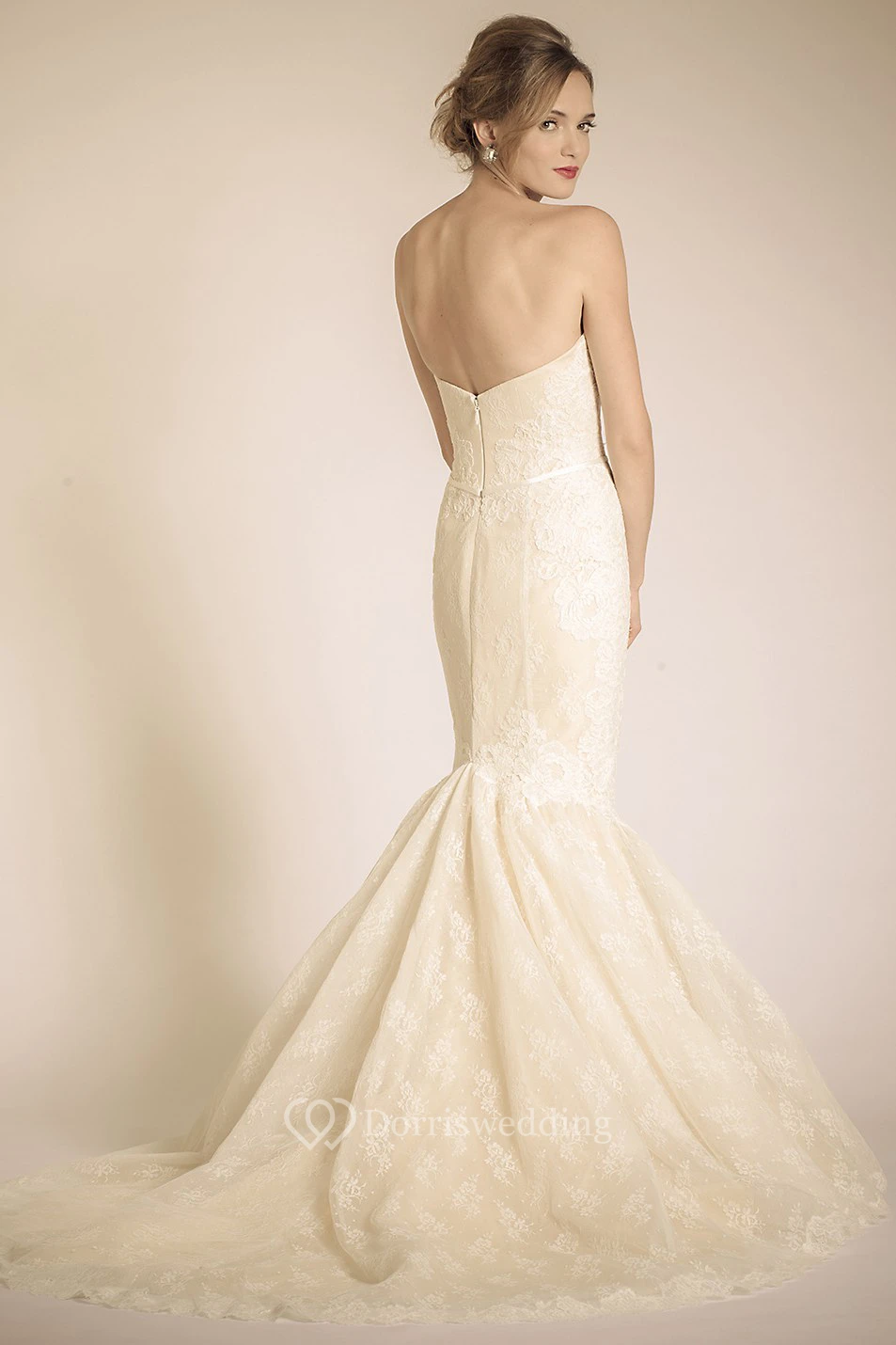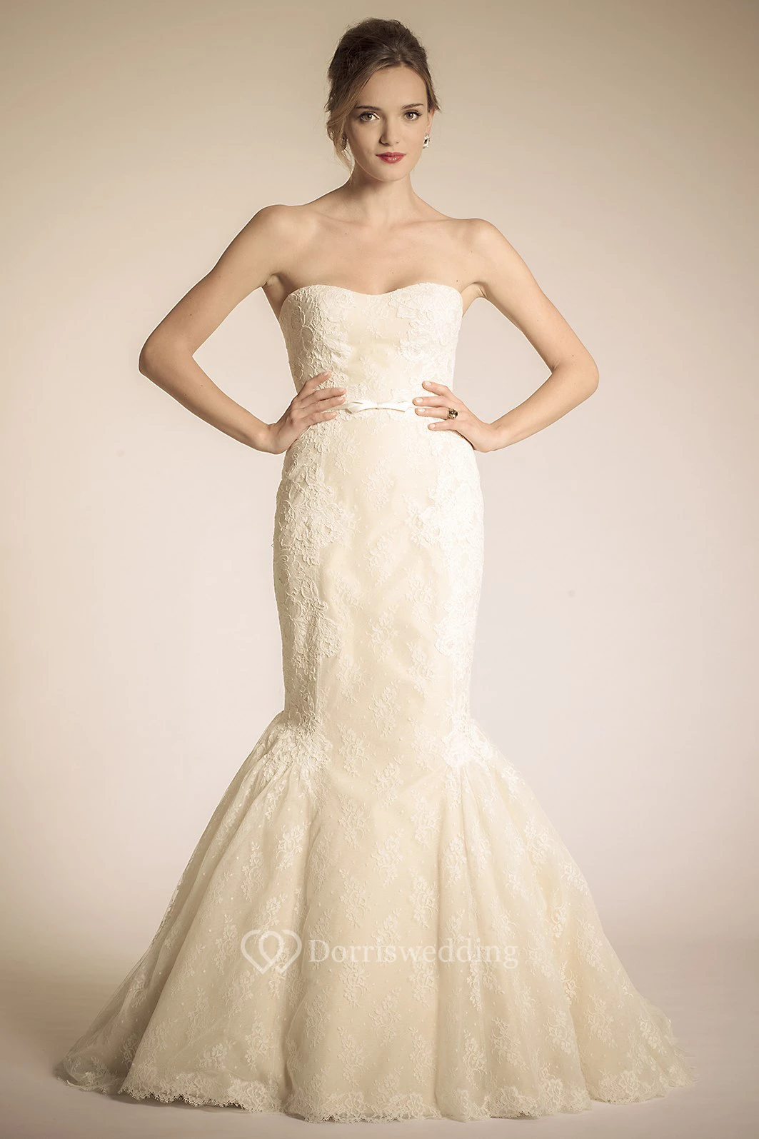 Mermaid Sleeveless Strapless Appliqued Floor-Length Lace Wedding Dress With Bow